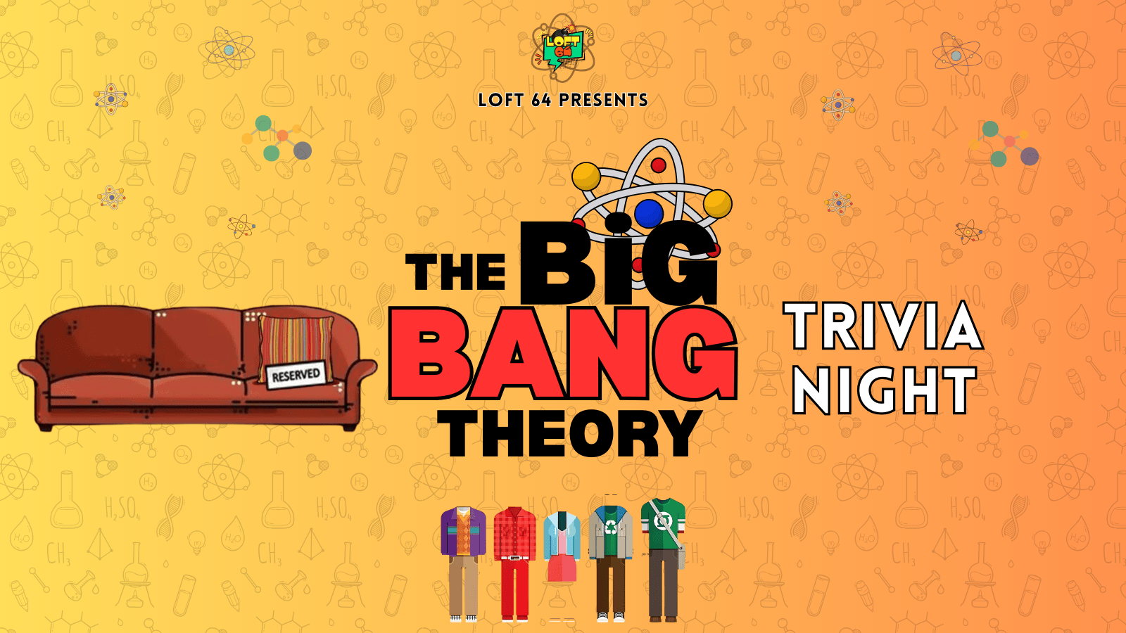 Join us at Loft 64 for a Big Bang Theory Trivia Night filled with iconic moments, legendary one-liners, character quirks, and details only real fans remember. Expect laughter, friendly competition, and a cozy quiz night experience with fellow sitcom lovers.