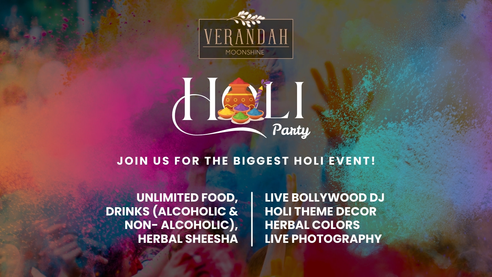 🌈🔥 HOLI PARTY 2026 WITH VERANDAH MOONSHINE 🔥🌈