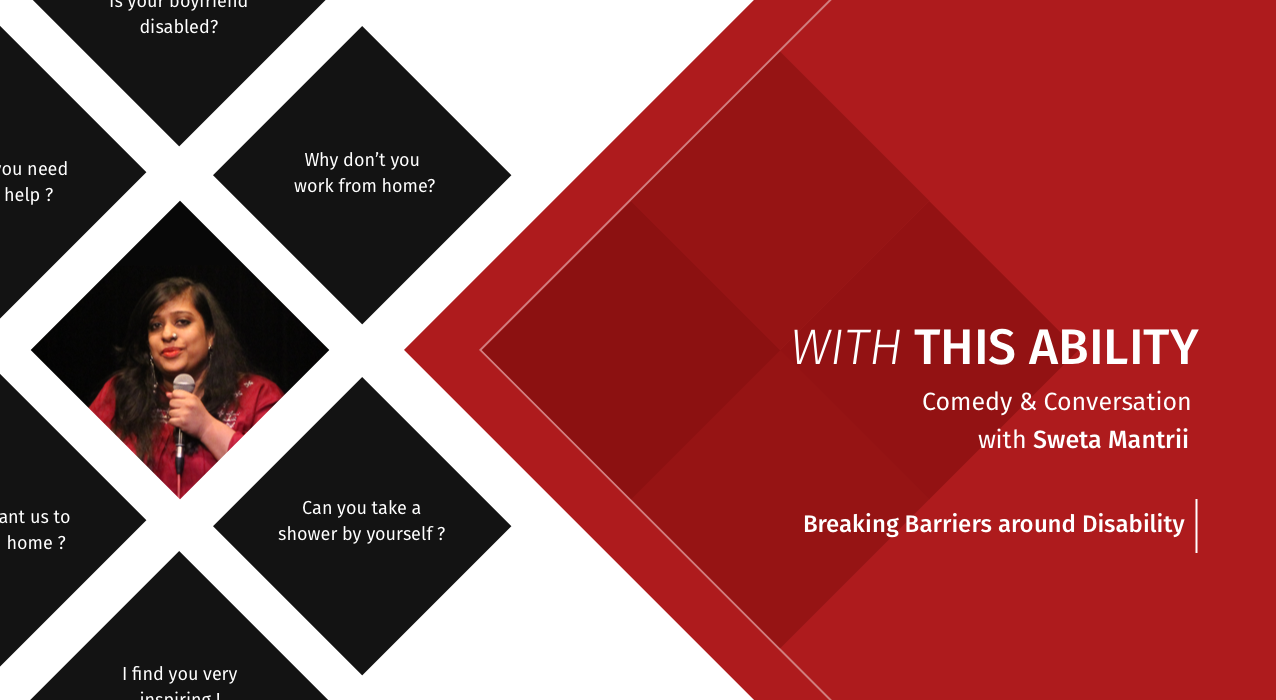 Sweta Mantrii is a full-time awesome person whose superpowers include turning cab drivers into good people and scaring children with her crutches. Sweta is an MBA turned writer and disability rights activist who stumbled upon comedy quite accidentally; just like the other things that she stumbles upon while walking. Presently, she's having a gala time as she ‘stands up’ to address the understanding of disability and the disability of understanding - one joke at a time! Through 'With This Ability', Sweta attempts to break the psychological barriers around disability by highlighting the nuances of her daily life through comedy and further engaging people in meaningful conversation on the subject.
