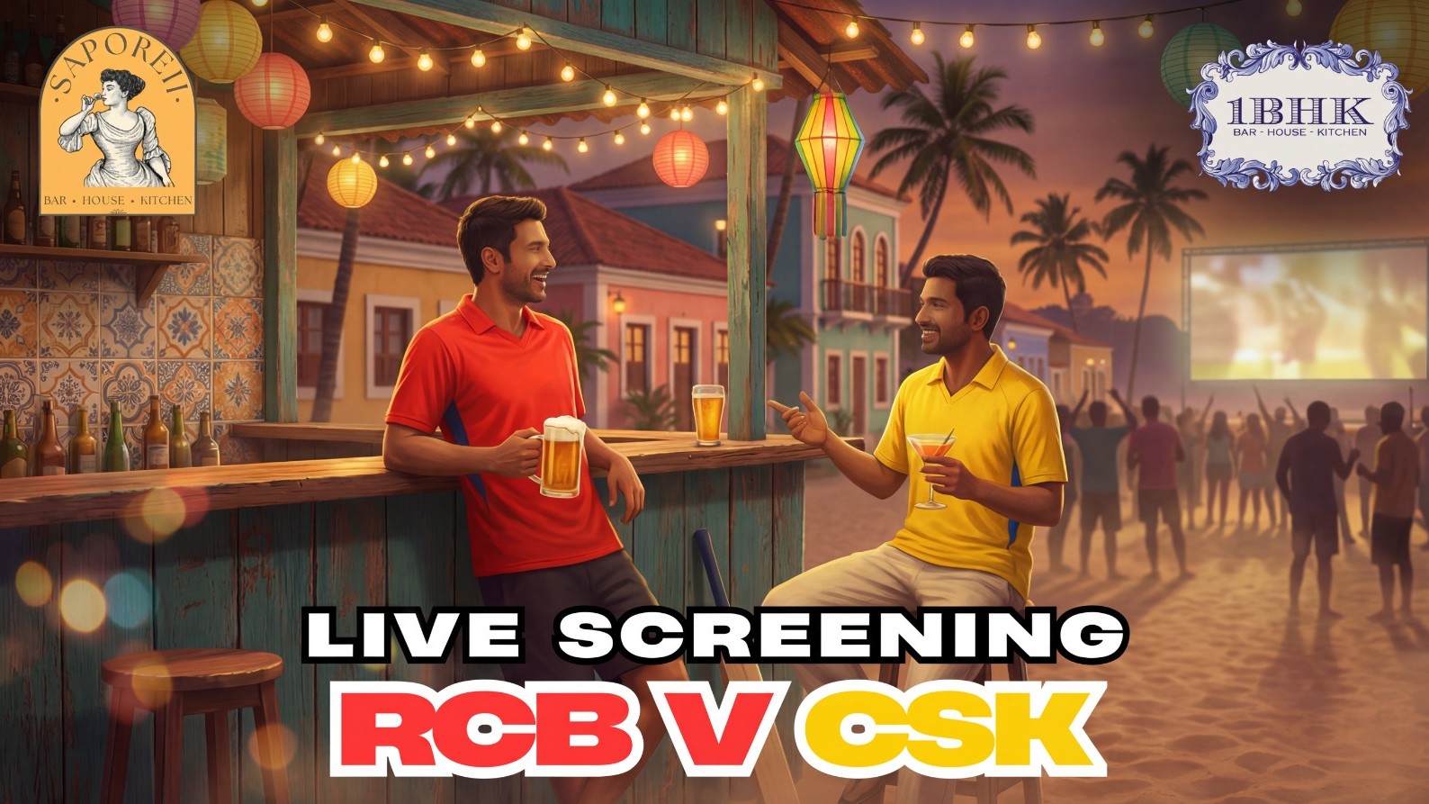 Get ready for the ultimate IPL clash as RCB takes on CSK in an electrifying live screening experience at Saporeii x 1BHK! 🏏🍻