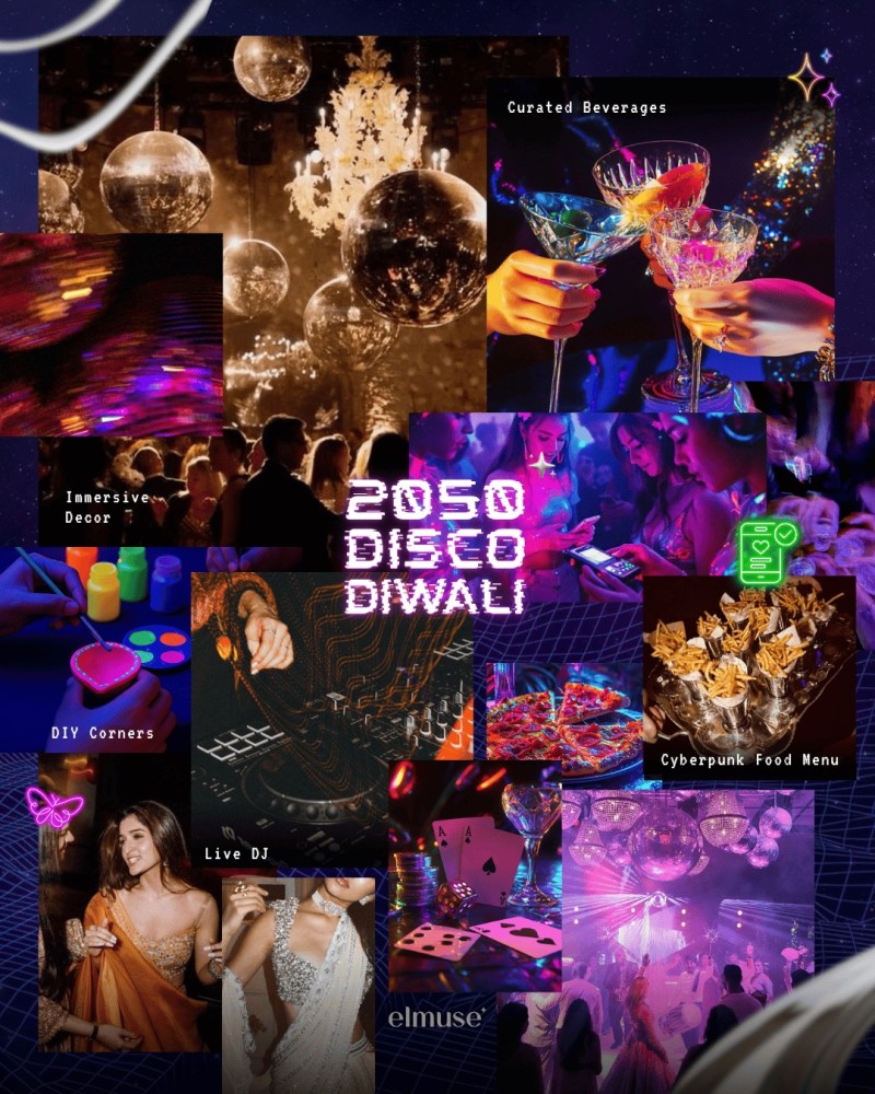 Fusion mithai, curated food menus, neon rangolis, painting diyas, card games, and dancing like the future forgot to be serious.