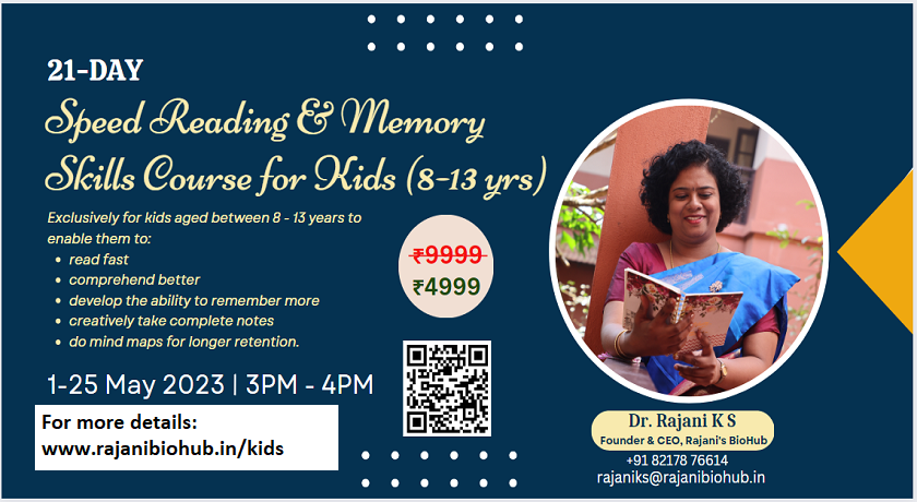 This 21-day Speed Reading & Memory Skills Course is designed exclusively for kids in the age group of 8-13 years. The course is curated to be both educative and entertaining and to have a life-long positive impact by improving basic life skills of speed reading and memory retention.