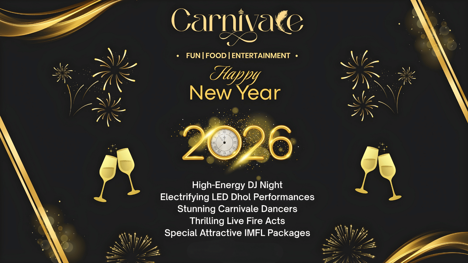 Get ready for an unforgettable New Year celebration at Carnivale, where fun, food & entertainment come together for one electrifying night.