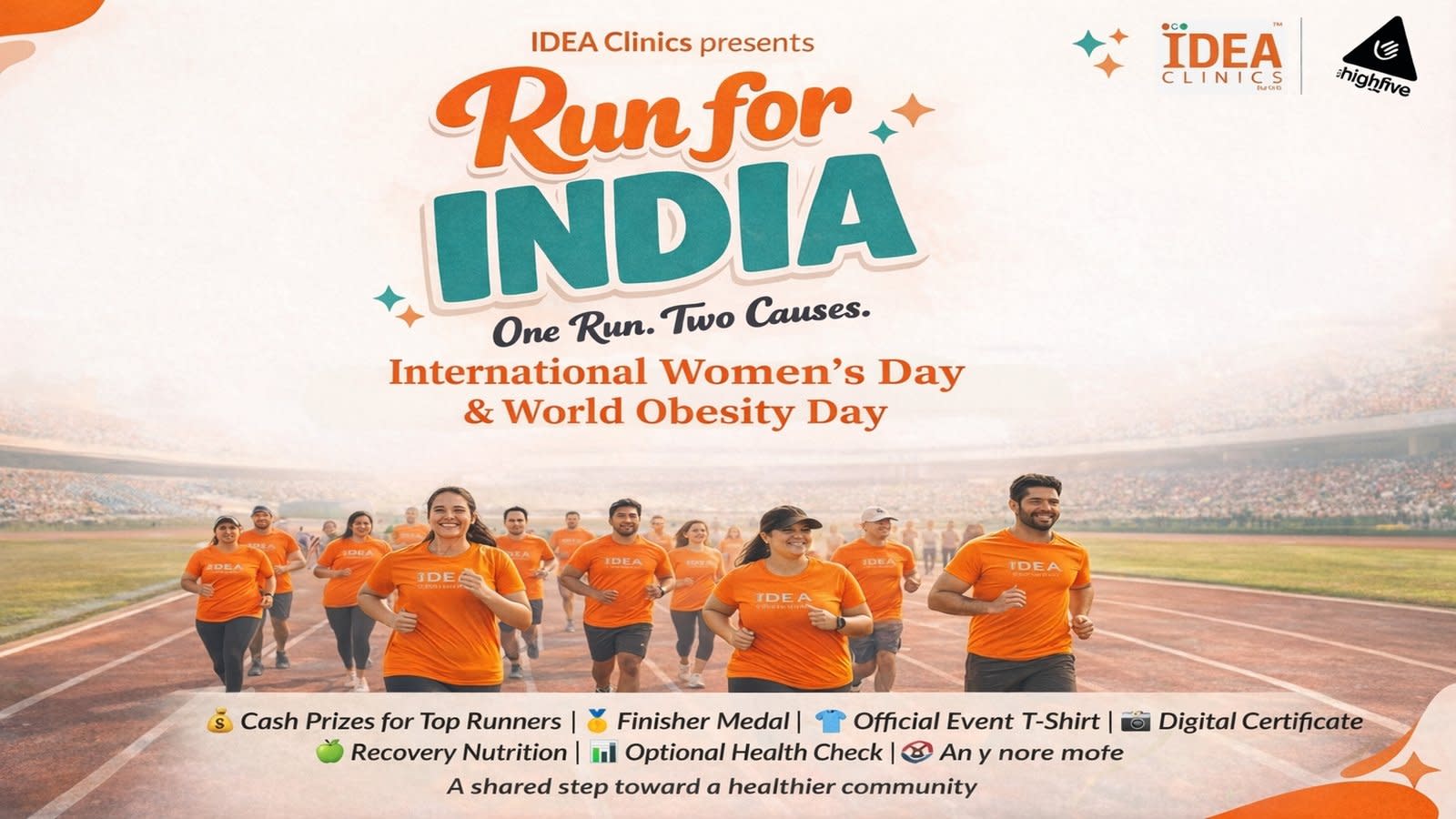 Join IDEA Clinics for an inspiring community run that brings together fitness, purpose, and celebration. Run for India is more than just a race—it’s a movement supporting International Women’s Day and World Obesity Day, promoting health, equality, and active living.