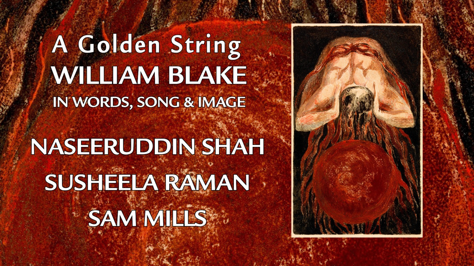 ‘A Golden String’ is a performance work that meshes music, poetry, and visual art to offer a raw encounter with the mind of visionary poet and artist William Blake. It features legendary actor Naseeruddin Shah and singer Susheela Raman, alongside her co-composer Sam Mills.