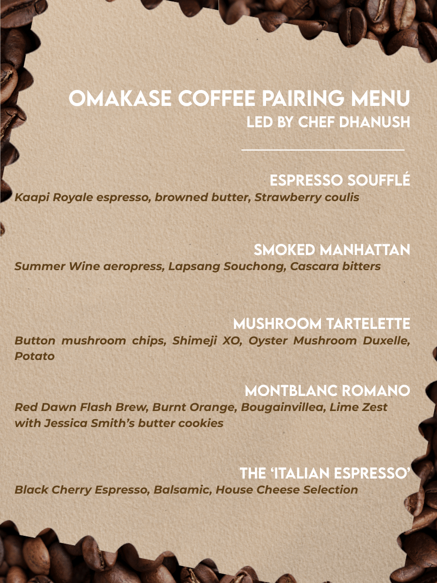 The event begins with a guided cupping of four new coffees, tasted side by side to understand their individual profiles. Each coffee is then brewed and served with a thoughtfully paired bite in an omakase-style format.