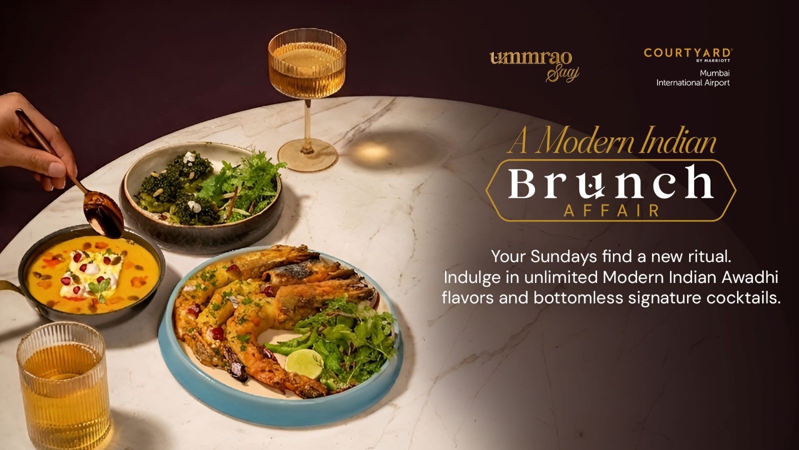 Step into a refined Sunday ritual with A Modern Indian Brunch Affair at Ummrao Saaj, where you can indulge in a contemporary take on Awadhi cuisine. Begin your experience with an elaborate grazing spread before enjoying unlimited à la carte selections featuring kebabs, curries, biryanis, and decadent desserts. Sip on refreshing zero-proof beverages, and elevate your brunch with the Raag cocktail upgrade and interactive chef-led experiences.