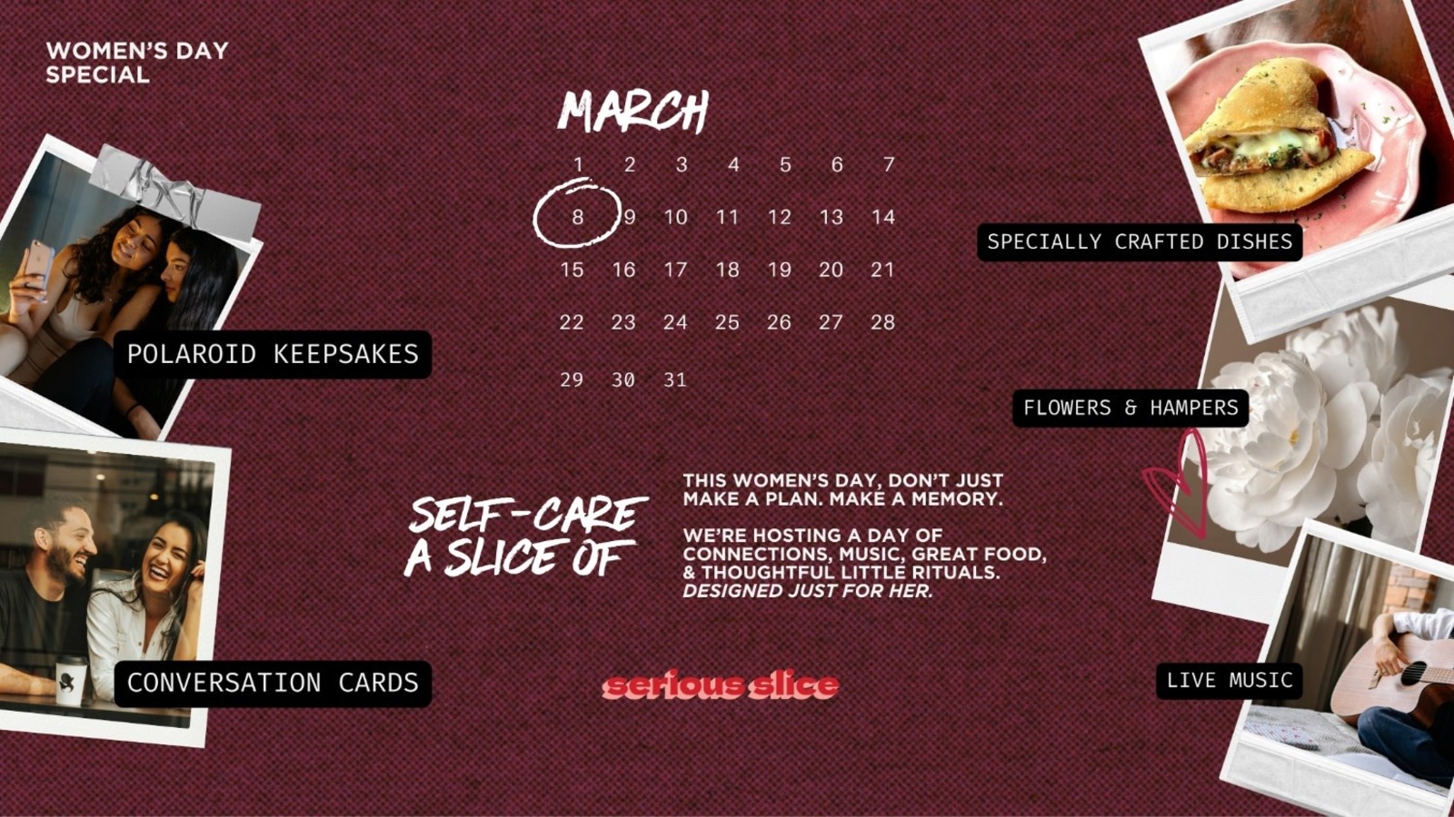 A full day designed around the women who deserve more than just a meal. Join us for lunch or dinner on March 8th.