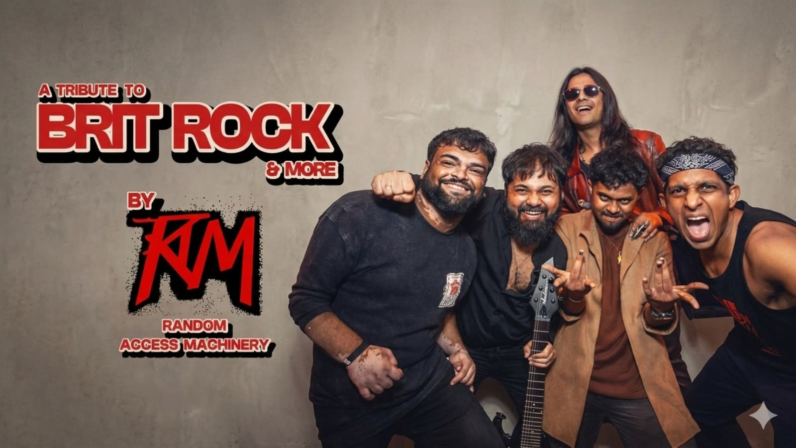 Get ready for a power-packed night of iconic anthems with A Tribute to Brit Rock & More by RAM. Experience the electrifying sound of legendary British rock bands as RAM brings you timeless classics, soaring vocals, and unforgettable guitar riffs, along with a few surprise hits beyond Brit Rock. From stadium singalongs to soulful ballads, this high-energy live performance promises pure nostalgia and adrenaline for every rock lover. Join us for an unforgettable evening of music, memories, and rock ’n’ roll spirit!
