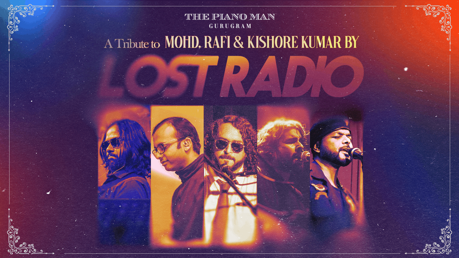 Lost Radio is a band formed for the crowd. As a band that does everything from old English classics to retro bollywood numbers. The band was originally formed as a duo by Diyatom Deb and Sushant Thakur. All four of the members play in prominent bands from the Delhi circuit like Char Hazaari, Big Bang Blues, Skyeyes and Moonphali.