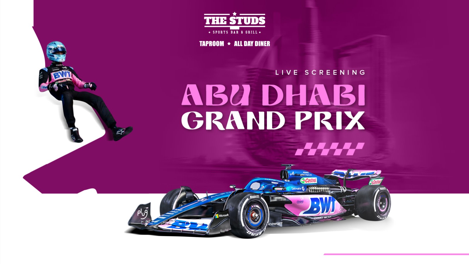 Witness the thrill, the speed, the overtakes, and the heart-stopping drama of Formula 1’s most iconic finale—all with the perfect sports-bar vibe. From roaring engines to roaring crowds… The Studs is where F1 fans unite!