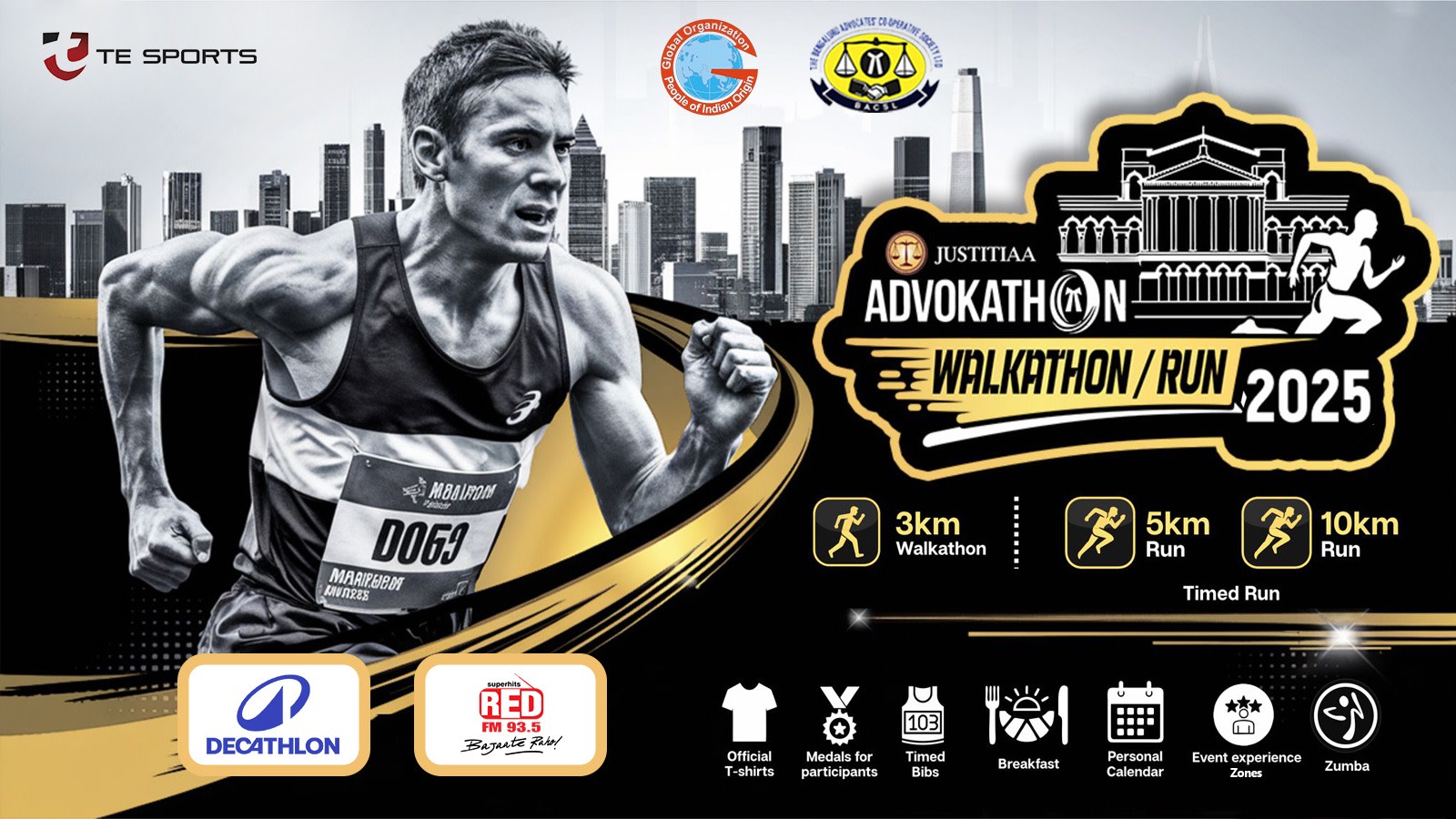 Join us for Advokathon 2025, an exclusive 3KM Walkathon | 5KM Timed Run | 10KM Timed Run curated especially for advocates, legal professionals, and their families – but open to all!