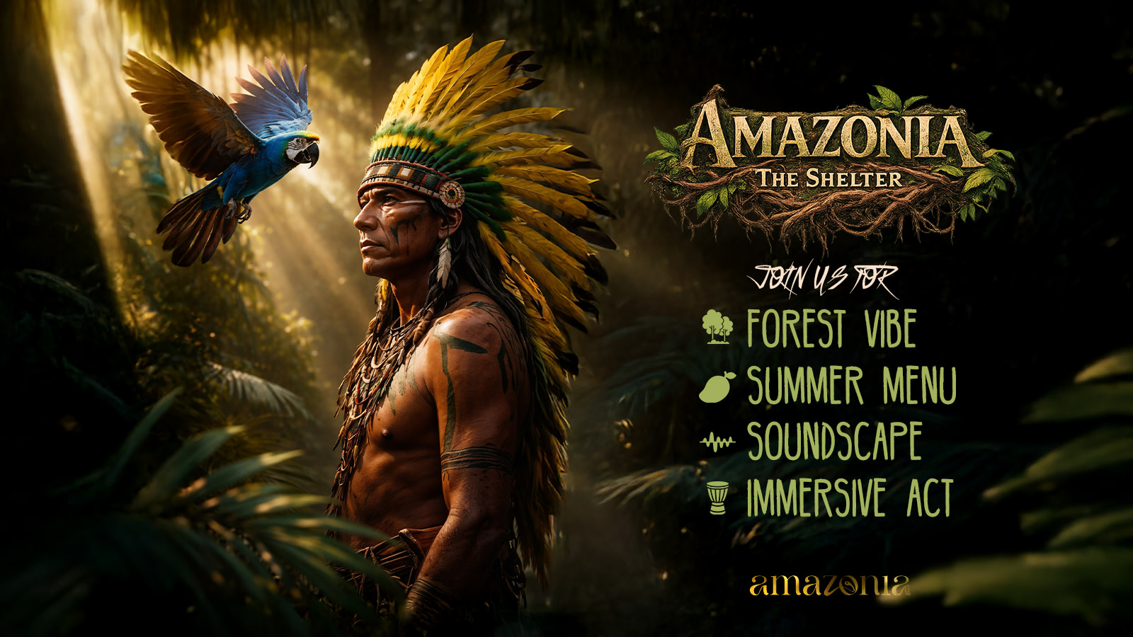 Escape the city and enter Amazonia: The Shelter, a one-of-a-kind immersive jungle experience designed to awaken your senses. Inspired by the raw beauty of the Amazon rainforest, this event blends nature, sound, and culture into an unforgettable evening.