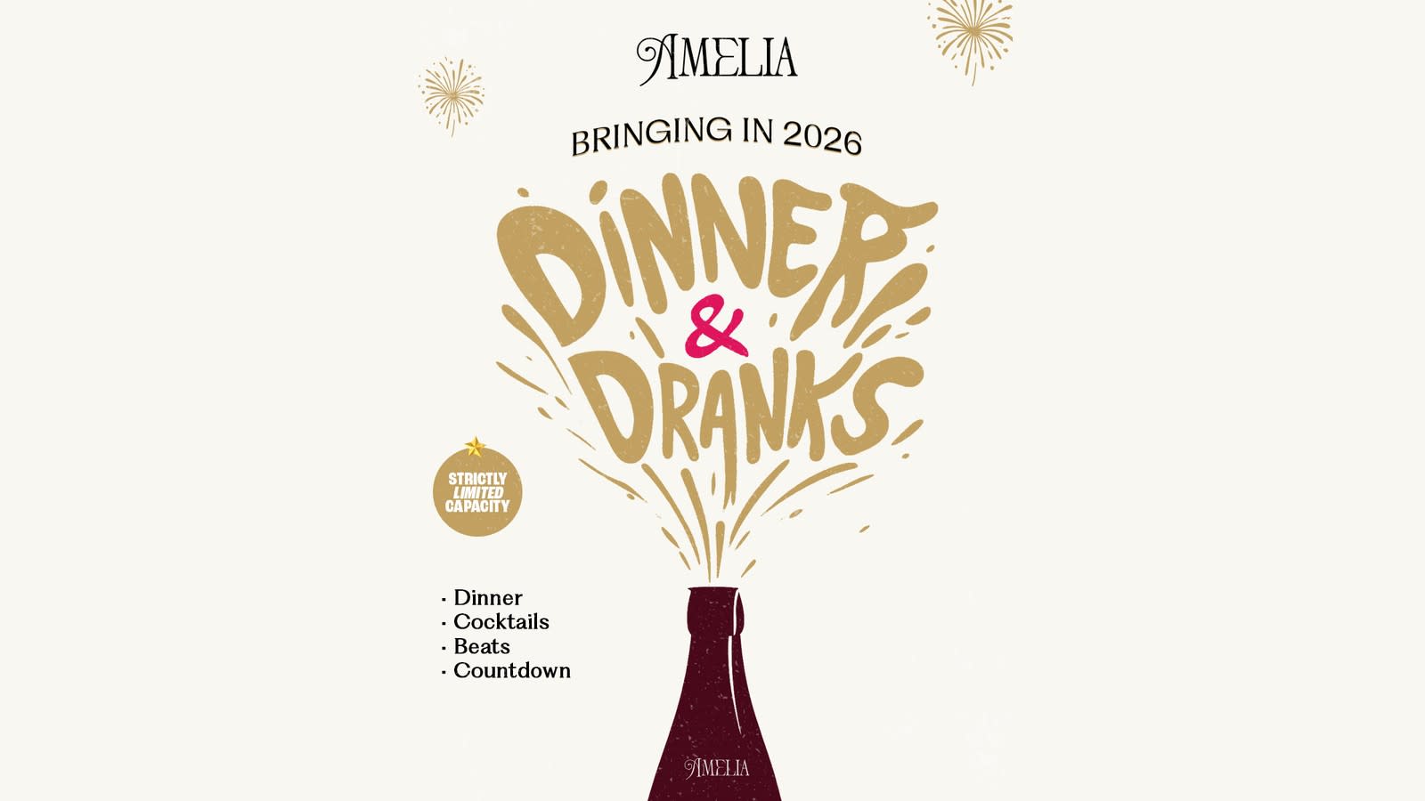 ✨ Glamorous ambience 🥂 Premium cocktails & curated food 🎶 High-energy music all night 🎉 Countdown, New Year the Amelia way, stylish, spirited, and unforgettable.