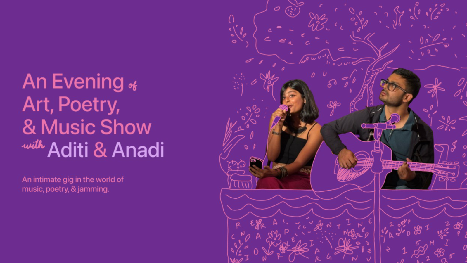 Aditi Sinha, an entrepreneur and a storyteller, along with her brother, a talented musician, brings forth a poetry and music showcase. Together, they combine their worlds of music and poetry to create a space where artists and audiences can connect, reflect, and feel. This event celebrates the magic that happens when words meet melodies. Their goal is to inspire, move, and leave everyone with a lingering sense of wonder.