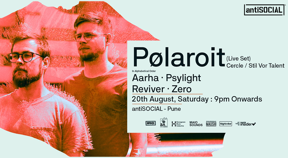 Maio Sounds x AntiSocial x Nightvibe host German techno/house stars from the prestigious Cercle platform - Pølaroit signed onto the mighty Stil Vor Talent label performing their LIVE SET along with some of Pune's finest underground talent - Reviver, Aarha, Psylight & Zero on Saturday, 20th August at AntiSOCIAL Pune!