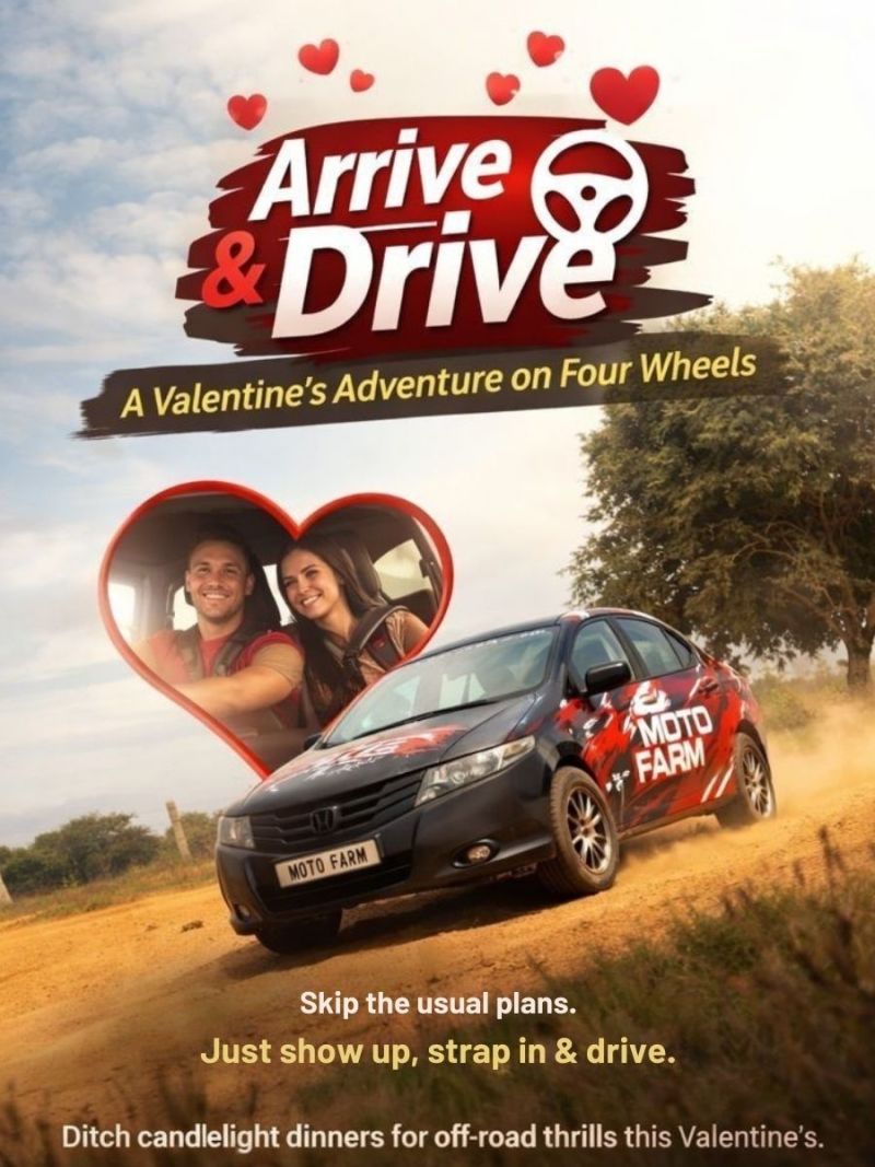 Arrive & Drive is an off-road car driving experience where you just arrive and take the wheel. We provide the vehicle, safety briefing, and expert support—so you can focus on the drive, the thrill, and the time together.