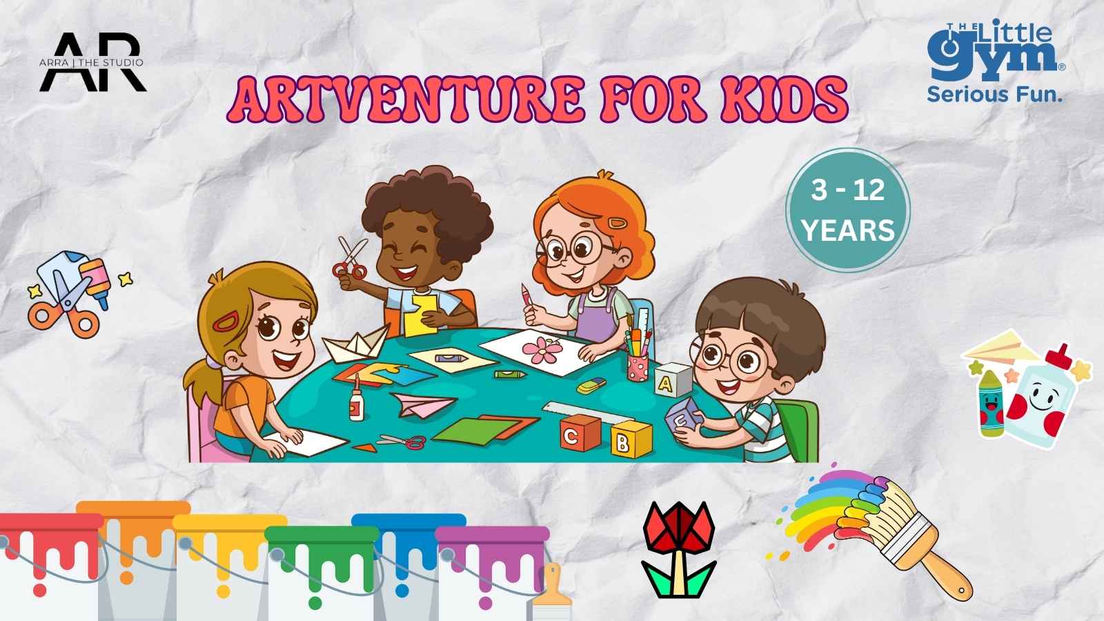 Unleash your child’s imagination in our exciting Artventure for Kids! Perfect for ages 3 to 12, this hands-on art and craft journey blends creativity, learning, and joy. Kids will explore colors, shapes, textures, and storytelling through painting, sculpting, paper craft, and more. It's more than just fun—it's a celebration of expression, friendship, and confidence-building through art.