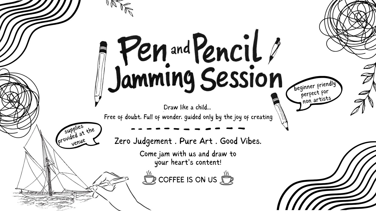 Let’s draw, doodle, and connect. Open to everyone, regardless of age.