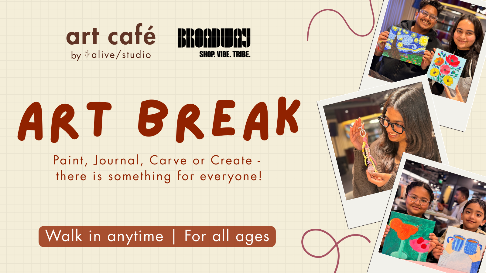 Just like a restaurant, but instead of ordering food, you order art experiences. :) Art Café by Alive Studio at Broadway is a creative space where making art feels like sharing a conversation - relaxed and joyful. It’s not about skill level or finished pieces; it’s about showing up, exploring materials, connecting with others, and expressing yourself in ways you didn’t expect.