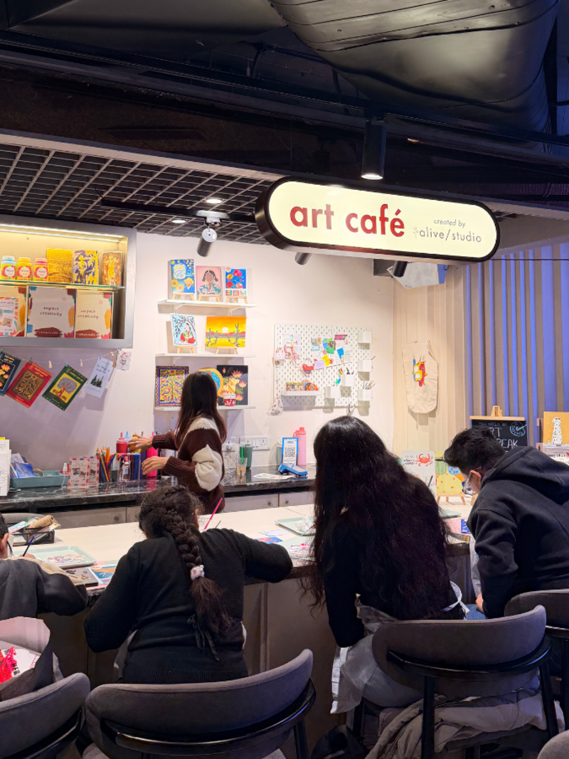 Created by the team behind Gurgaon's most loved art studio, you can now drop in at Art Cafe inside the Broadway store any time, any day for a quick art break. From canvas painting, to beaded charms, from therapeutic collages to resin jewellery – there is always something to discover at this lovely nook :)