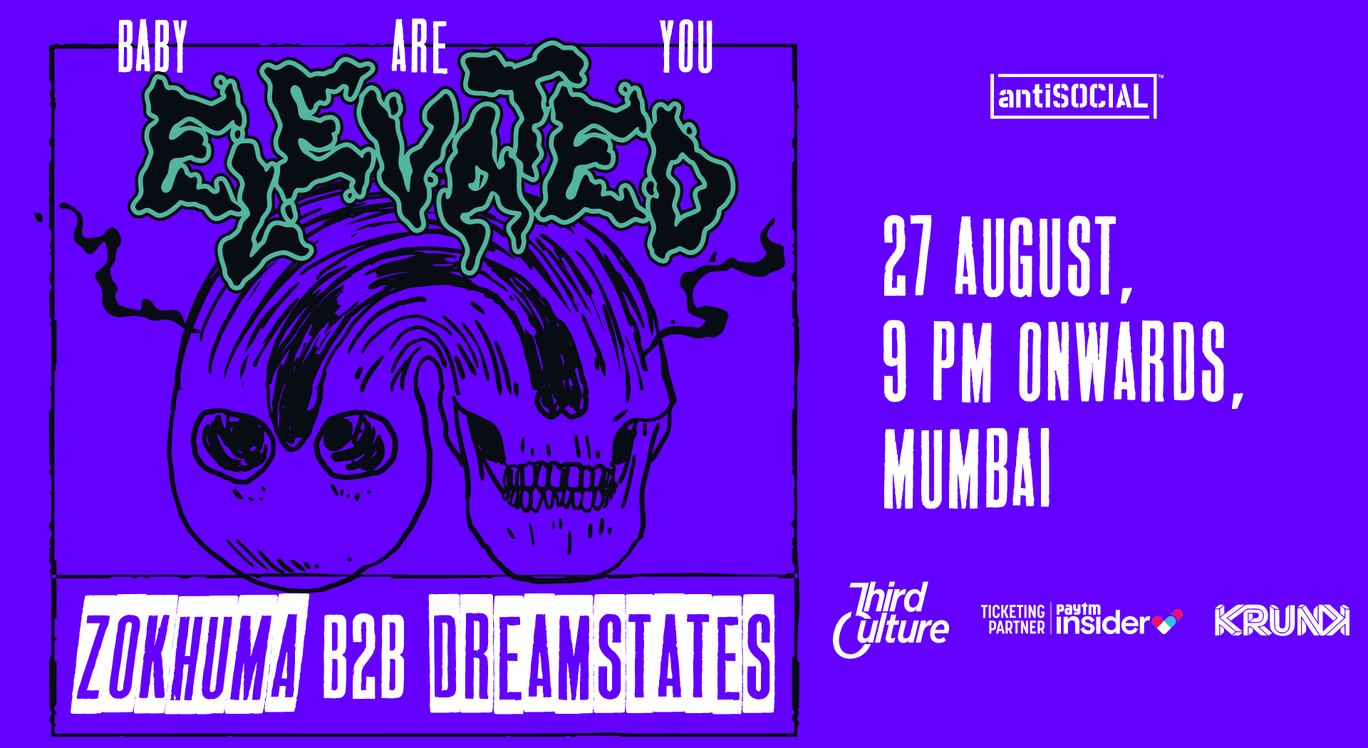 Zokhuma & Dreamstates go back to back ALL NIGHT LONG! as part of their 2nd B2B Tour on 27th August in their hometown at antiSOCIAL Mumbai. Mark your dates and cop those tickets.