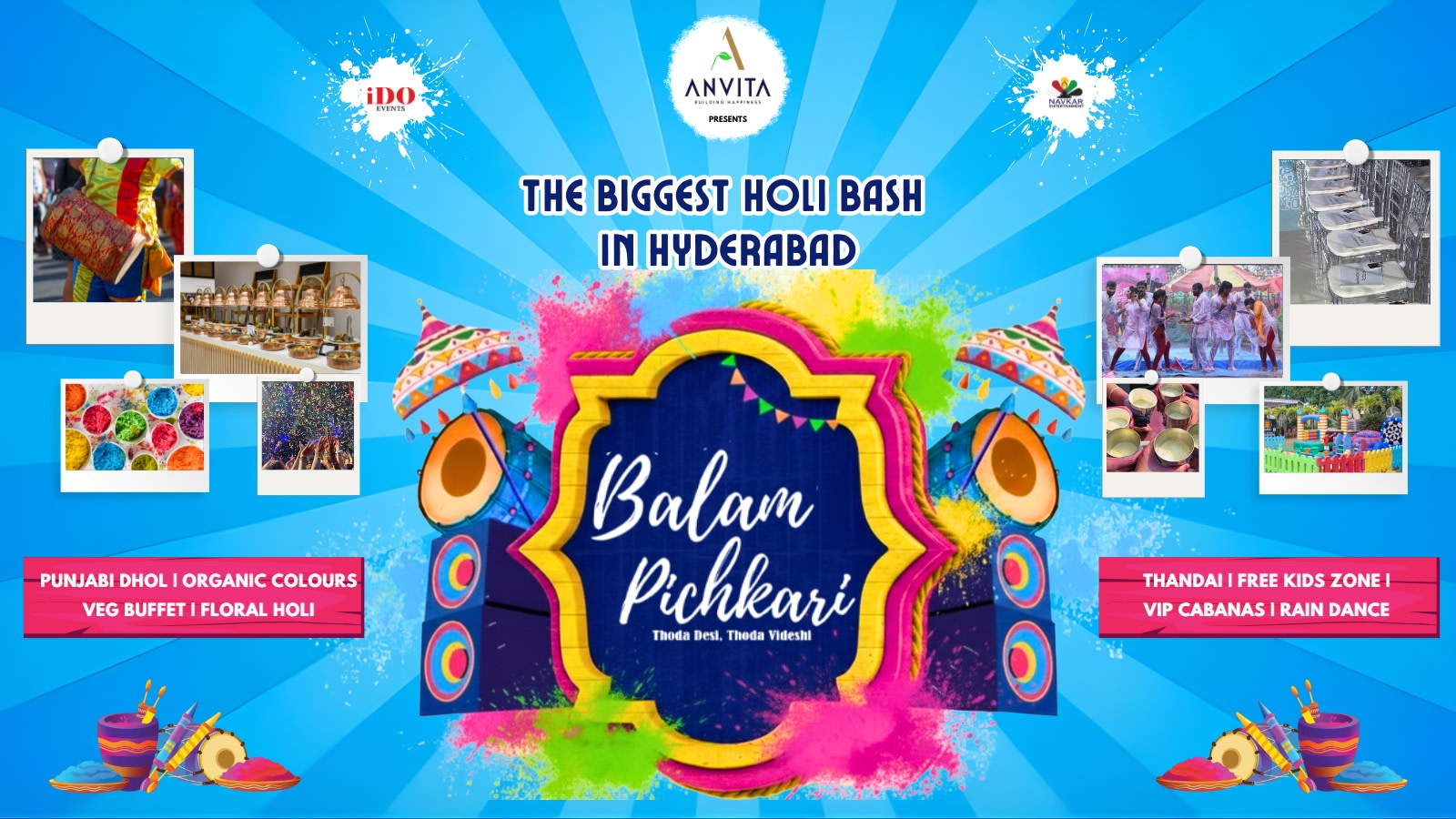 Get ready for Hyderabad’s most awaited Holi festival — Balam Pichkari 2026 (Season 7) is back with bigger colors, louder beats, and unmatched festive vibes at Jalvihar, Necklace Road.