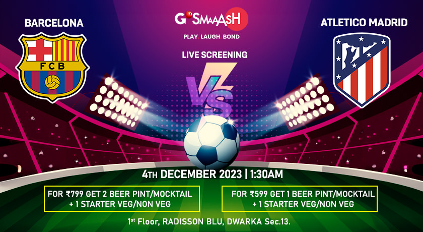 One of the biggest rivalry in the spanish league. This game is full of drama, thrill and excitement, so join us at Smaaash Dwarka Radisson Blu for live screening of this electrifying game with great atmosphere and delicious food & drinks!!