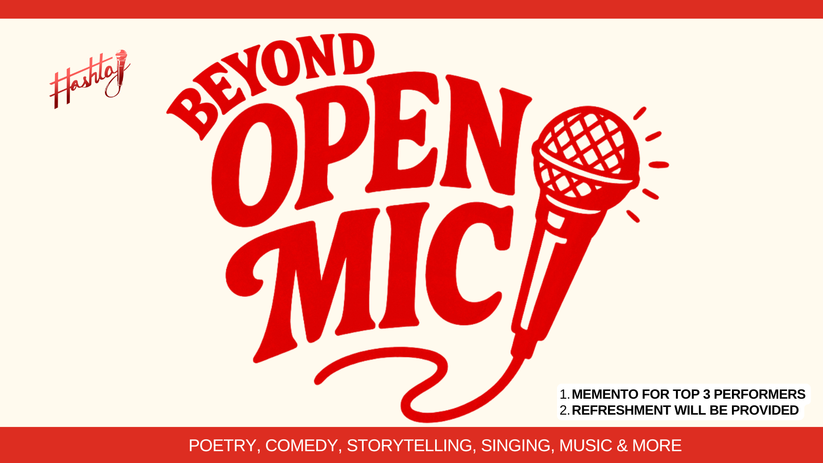 Get ready for a day filled with interactions, fun chit-chat and the chance to connect with like-minded creatives. This is more than just an open mic, as this is beyond an open mic.