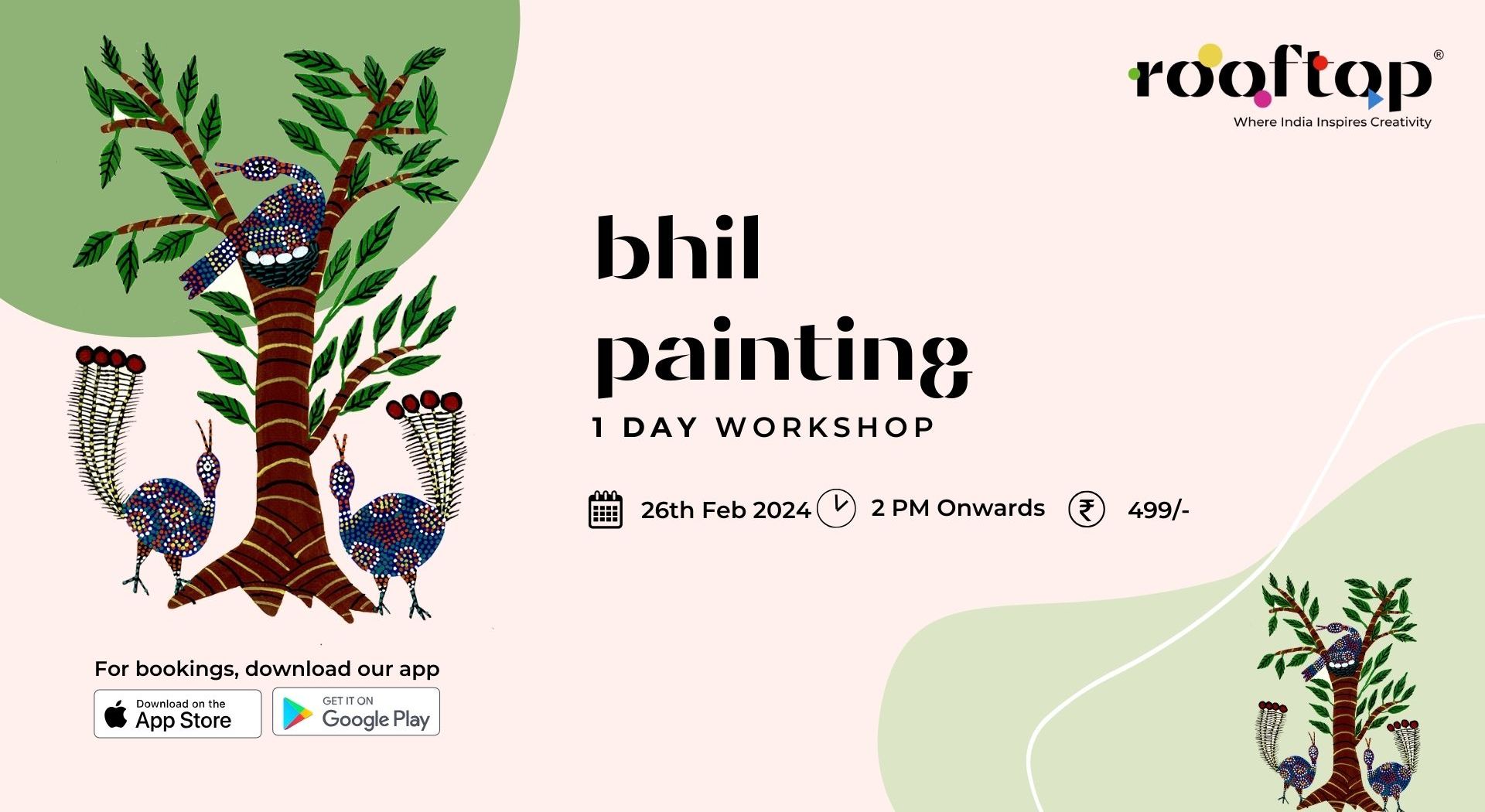 Let's experience the essence of art together. Join us for creating joy of life in the Bhil painting Workshop by The Rooftop! (@rooftop_app)