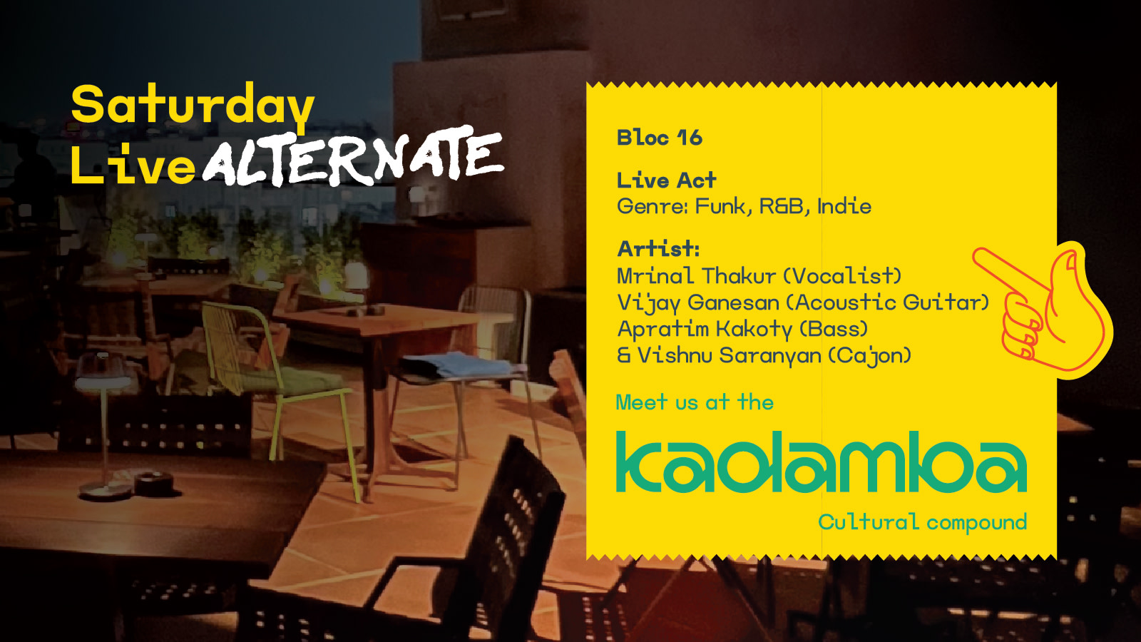 Hailing from Hyderabad, India, this indie/R&B/funk collective crafts warm, groove-led originals rooted in feel and atmosphere. Their originals, like Pink Lemonade and Lost Cause, mark the beginning of a growing catalogue, with more stories and sounds ready to unfold. Bloc16 is the thirteenth note: a soulful sound sparking change beyond genre.
