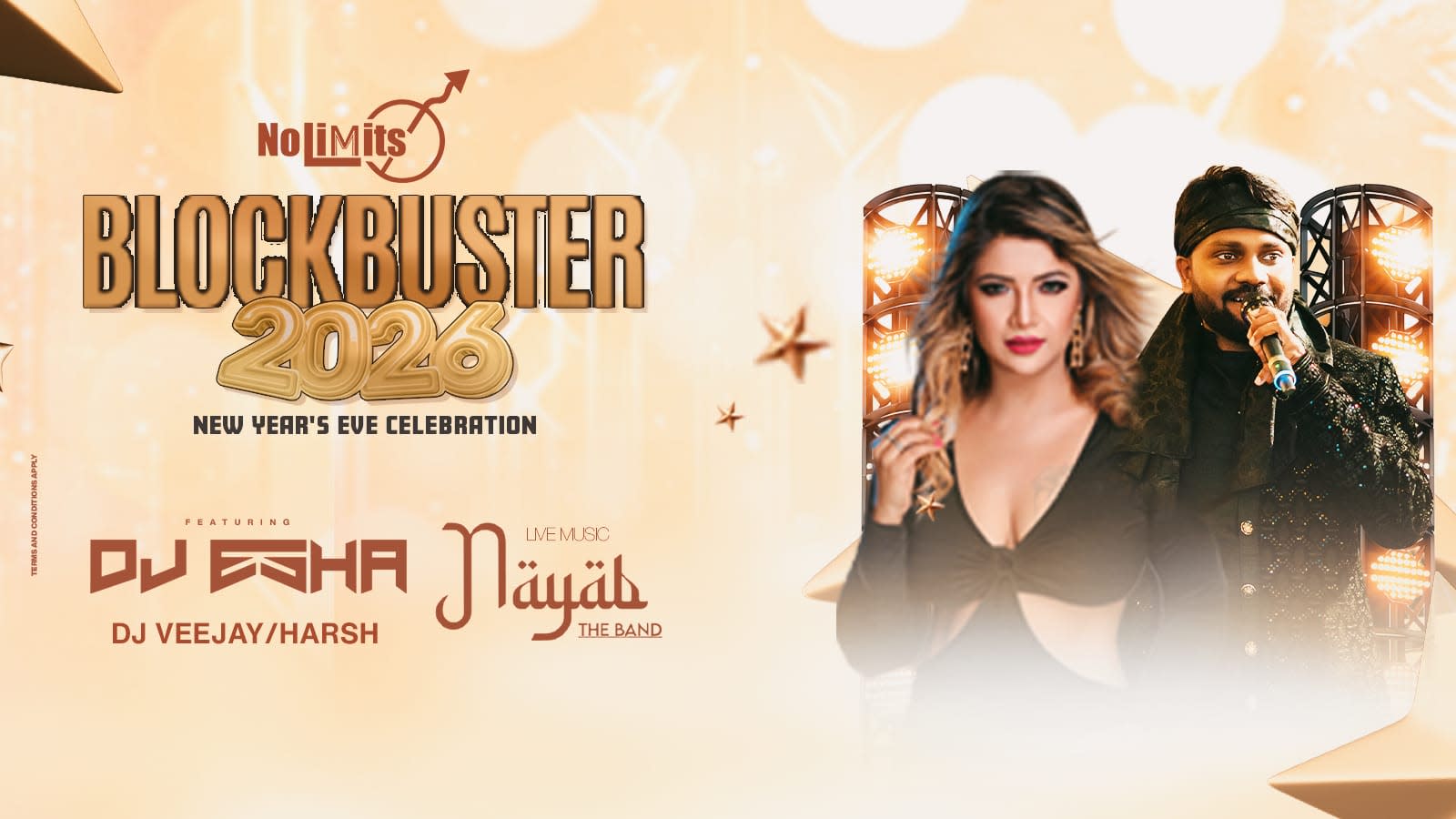 Ring in the New Year with unstoppable energy at Nolimmits Lounge! Celebrate the biggest NYE bash in town featuring DJ Esha and Nayab - The Band setting the dance floor on fire.