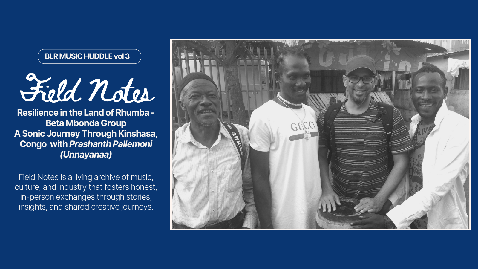 In 2019, Prashanth Pallemoni (Unnayanaa) travelled to Kinshasa, Democratic Republic of Congo. During his time there, a chance meeting with a local band - Beta Mbonda Group - offered him an opportunity to engage with their music and gain insight into their lives and cultural context. What began as an informal exchange soon developed into a formal studio recording session, capturing the essence of their collaboration.