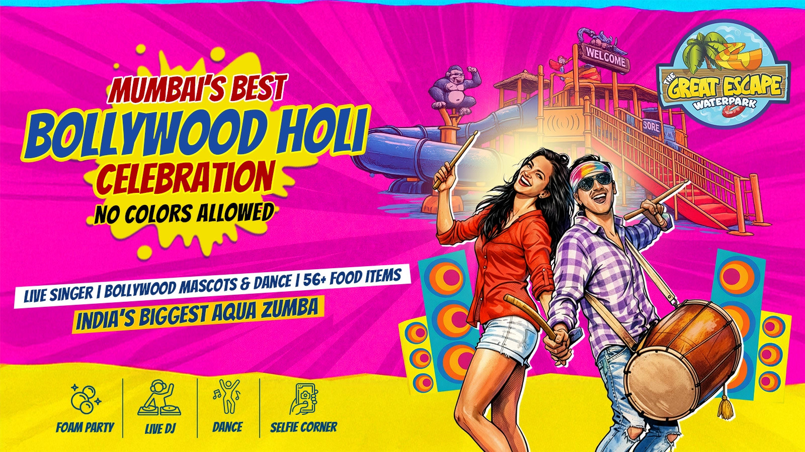 Celebrate Holi the Bollywood way at The Great Escape Water Park on 4th March 2025!
