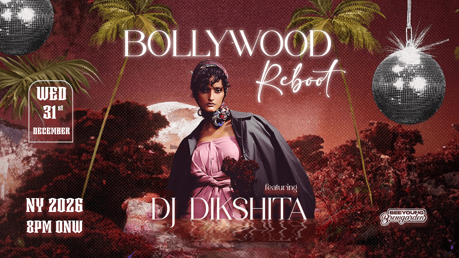 Join us on Wednesday, 31st December, 8 PM onward for BOLLYWOOD REBOOT – an electrifying NY 2026 celebration at BeeYoung Brewgarden.