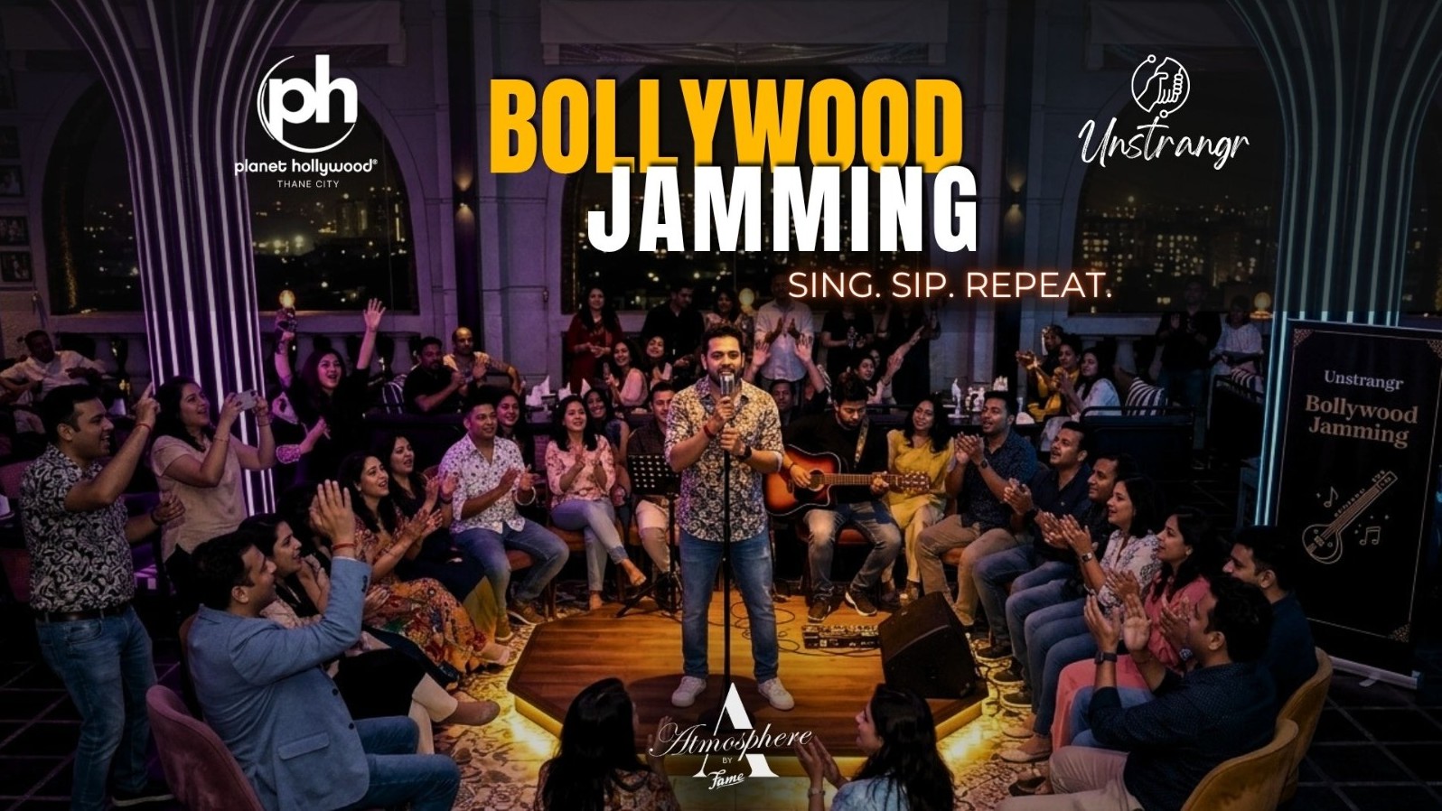 Bollywood Jamming Night, curated by Unstrangr, hosted at Planet Hollywood Thane, features a live performance blending iconic classics with contemporary favorites.