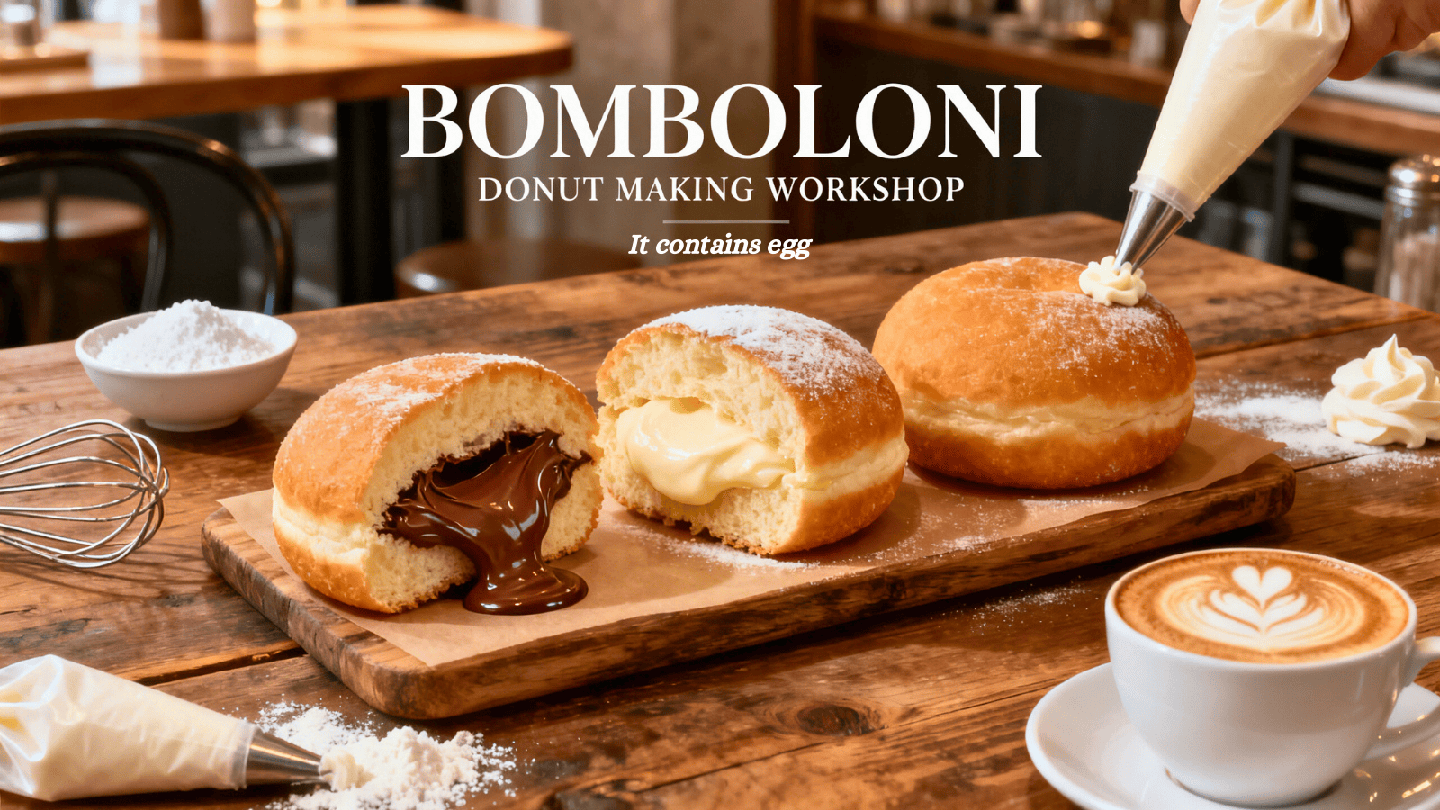 Bomboloni are soft, pillowy Italian donuts filled with rich creams and finished with powdered sugar. In this hands-on workshop, you’ll learn how to prepare the dough, fry the donuts perfectly, and fill them with delicious fillings.
