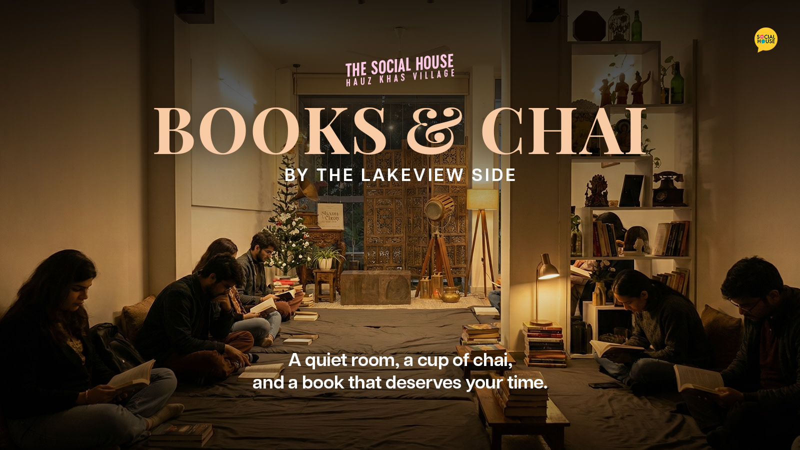 Books & Chai by the Lakeview Side is a quiet Sunday reading experience curated by The Social House. It is designed for people who enjoy reading without interruptions, or performances. Bring your own book or choose one from our in-house collection, settle by the lake, and spend time reading alongside fellow book lovers. Chai is included, and the atmosphere is intentionally calm and unhurried. This is not a book club, it's a reading space that just shared silence and focused reading. If you value slow mornings, thoughtful pauses, and the simple joy of turning pages, this space is for you.