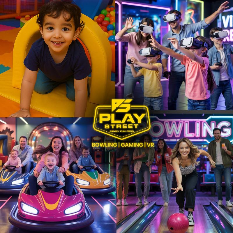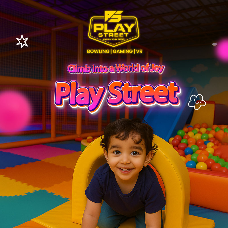 Play Street is a one stop entertainment destination for entire family which delivers fun through its amazing gaming concepts like soft play, bowling, bumper cars, VR, arcade games, redemption games, wave car, motion cars, video games, kiddy rider, vending games, carnival games, magic air hockey, basketball, carousel games, king of hammer, birthday party celebrations and redemption games. With a 10,000 sq. ft. area, we offer facilities and amenities like a cafeteria, car parking, fully a/c space.