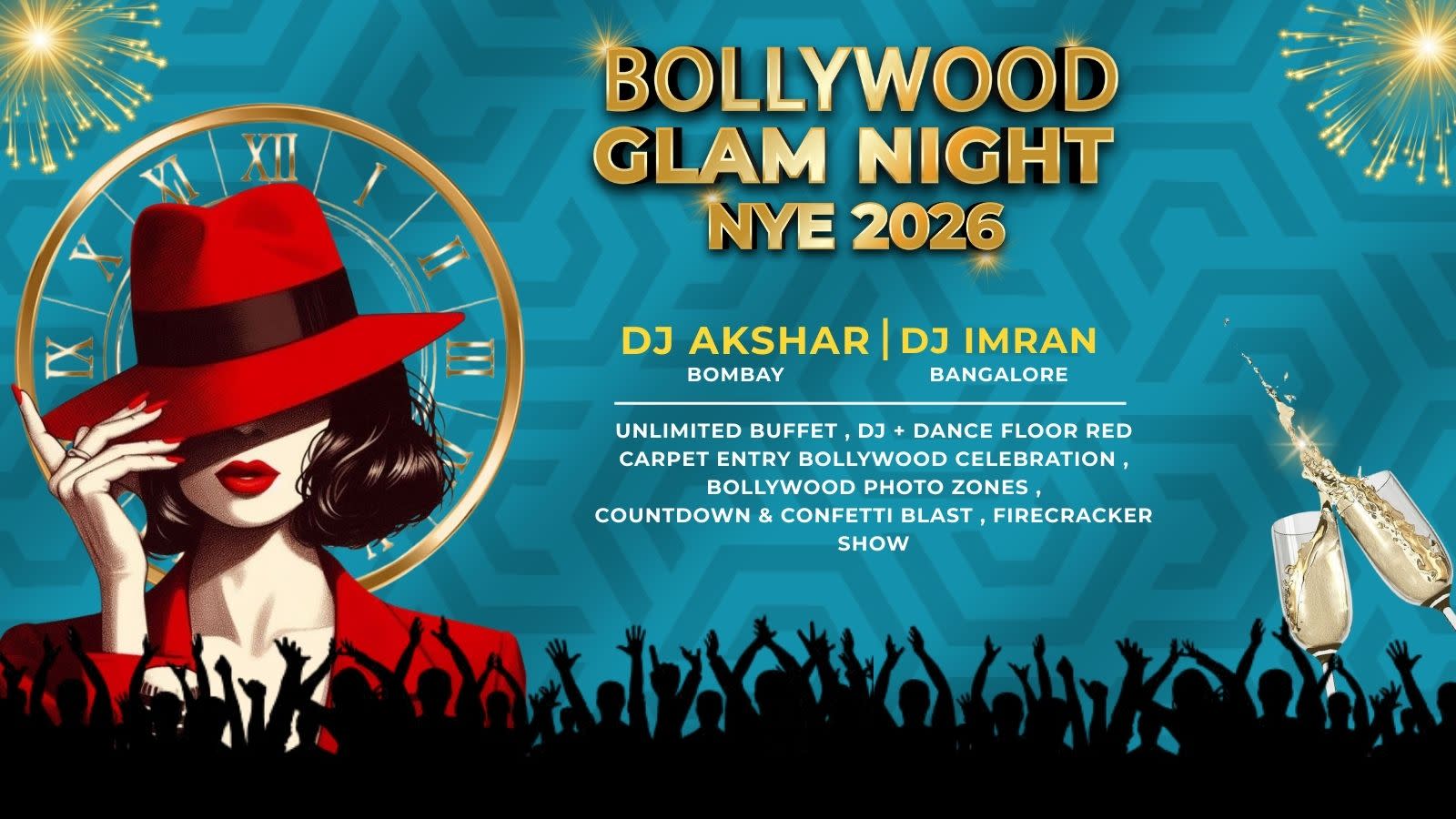 Get ready for a blockbuster celebration filled with dazzling lights, celebrity-style vibes, and an unforgettable midnight countdown.