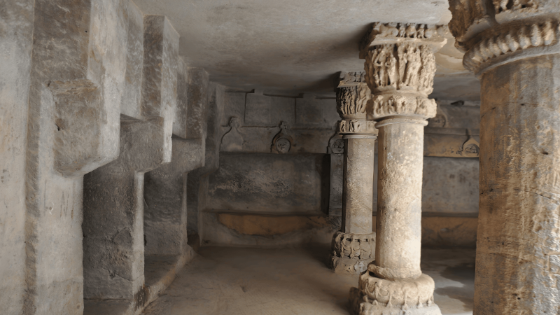 Dating from the 1st to 4th century C.E., the caves formed an active center of Buddhist practice and learning. First documented in 1822 by the British archaeologist Sir James Tod, the groups reveal layers of craftsmanship that reflect the devotional and educational functions they once served within the broader Buddhist landscape of western India.