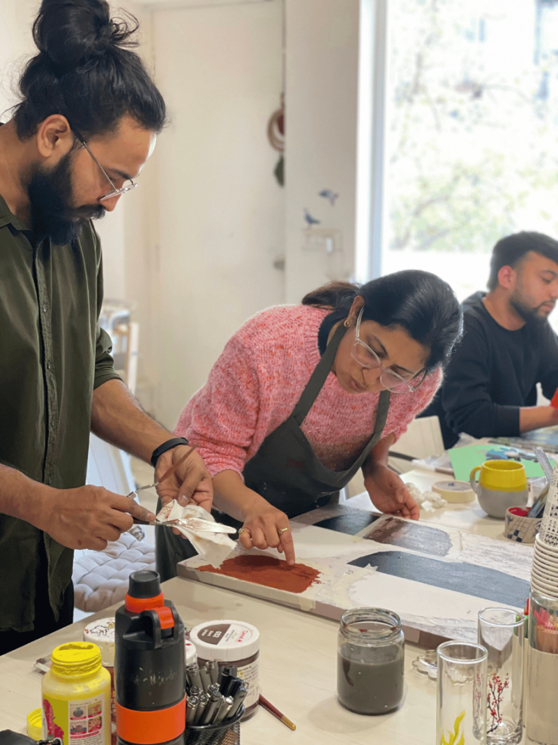 Alive Studio is a multi-disciplinary art studio with 50+ art forms for you to learn and explore. All our sessions are guided by our in-house mentors, a young team of practicing artists who love sharing their love for art. Whether you are a beginner or have a little bit more experience, you will find just the right kind of guidance along with premium artist-grade material to create something you love and take a wholesome break from screens!