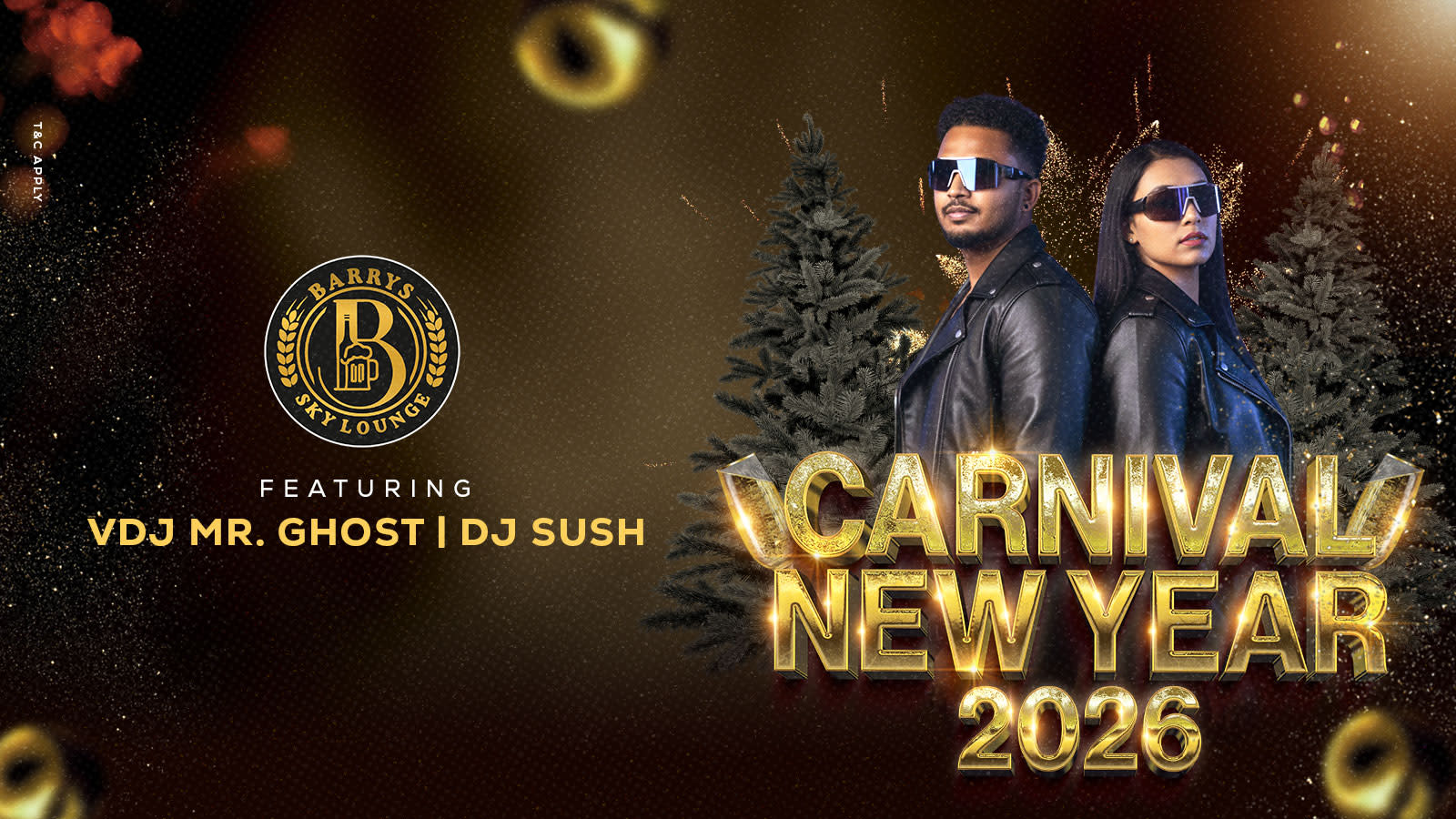 Step into a spectacular carnival-themed New Year celebration filled with colour, rhythm, and high-energy entertainment. Experience a vibrant night where music, performances, and festive ambience come together to create an unforgettable party atmosphere. Dance to electrifying sets by VDJ Mr Ghost and DJ Sush, followed by immersive live acts that bring the carnival spirit to life. From dynamic performances to lively crowd energy, this celebration delivers a perfect mix of excitement, fun, and carnival magic.