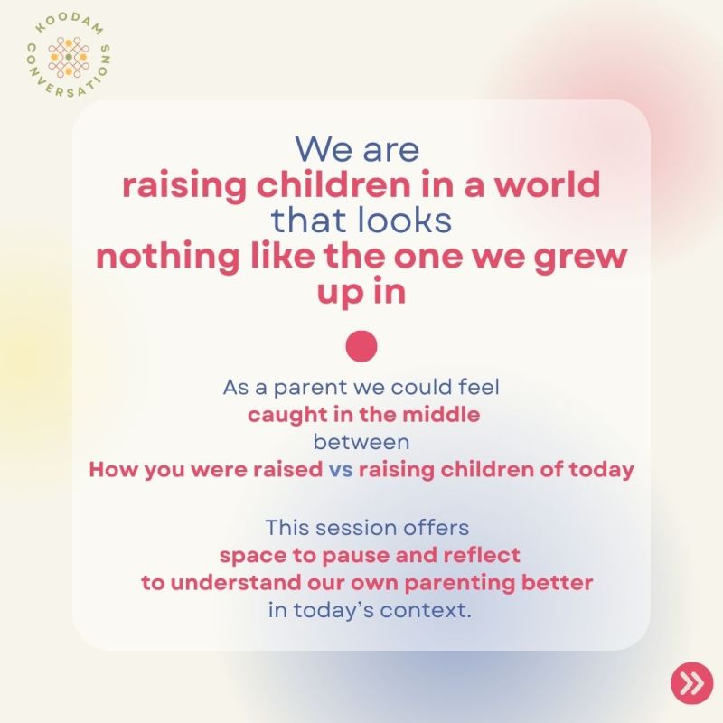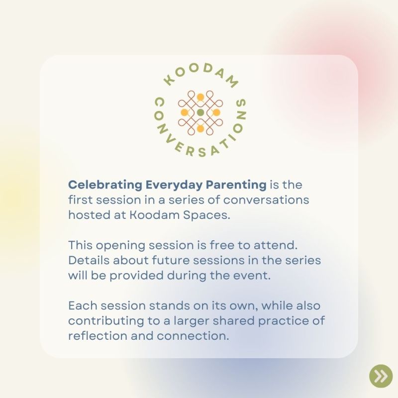 Parenting is shaped less by milestones and more by everyday moments — routines, doubts, small wins, and quiet worries. Celebrating Everyday Parenting is a gentle, reflective workshop that offers parents and caregivers a pause from advice and performance. Hosted at Koodam Spaces, this session creates a non-judgemental space to reconnect with your own parenting strengths and with others walking similar paths.