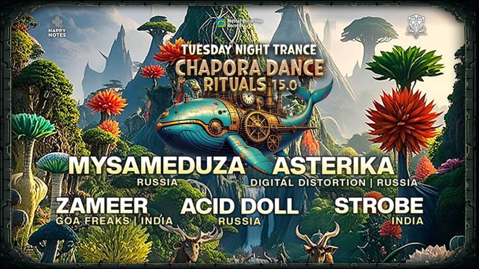 Digital Distortion Records and Happy Notes are thrilled to present the 15th edition of Chapora Dance Rituals, transforming Tuesday nights into an immersive journey through progressive trance and psychedelic soundscapes.
