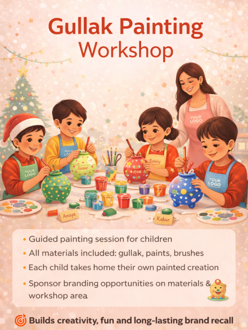 The highlight of the event is a Gullak Painting Workshop, where children get hands-on creative experience, guided by a professional facilitator. Every child will paint their own Gullak and take it home as a memorable keepsake.