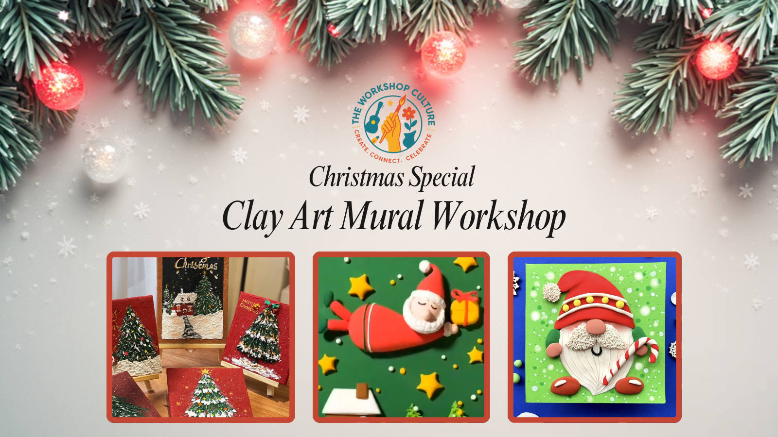 The Workshop Culture invites you to a joyful, festive, and hands-on Christmas Clay Mural Art Workshop! Think candy canes, snowflakes, Santa hats, reindeer… or any design your imagination brings to life!
