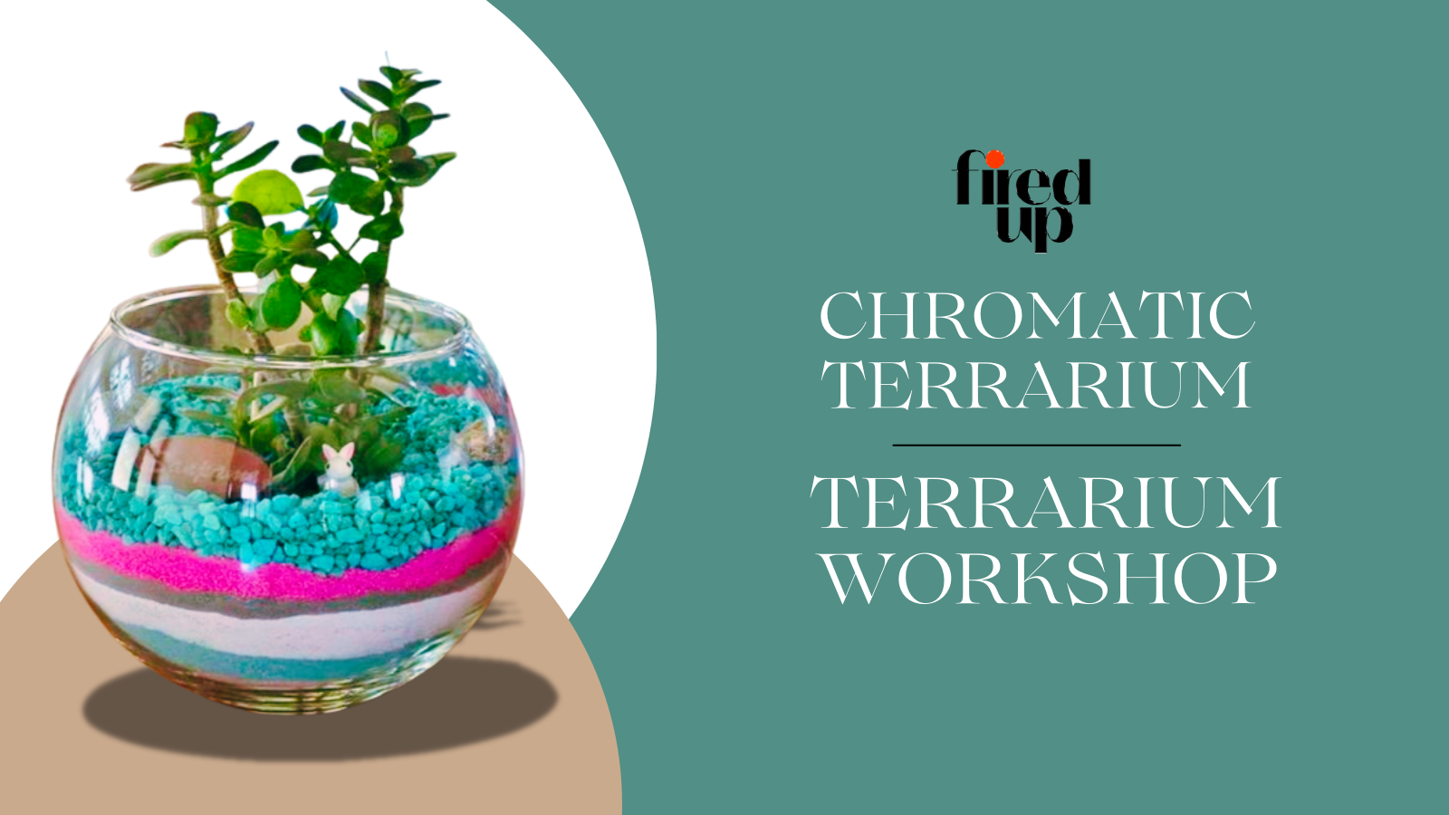 Discover the joy of building your own miniature green world at our Chromatic Terrarium Making Workshop at Fired Up Studio. This hands-on session introduces participants to the basics of terrarium design while offering a calm, creative experience that’s perfect for beginners and plant lovers alike. You’ll create a complete chromatic terrarium using carefully selected plants, soil, stones, and decorative elements, learning how colour, texture, and balance come together in a living form.