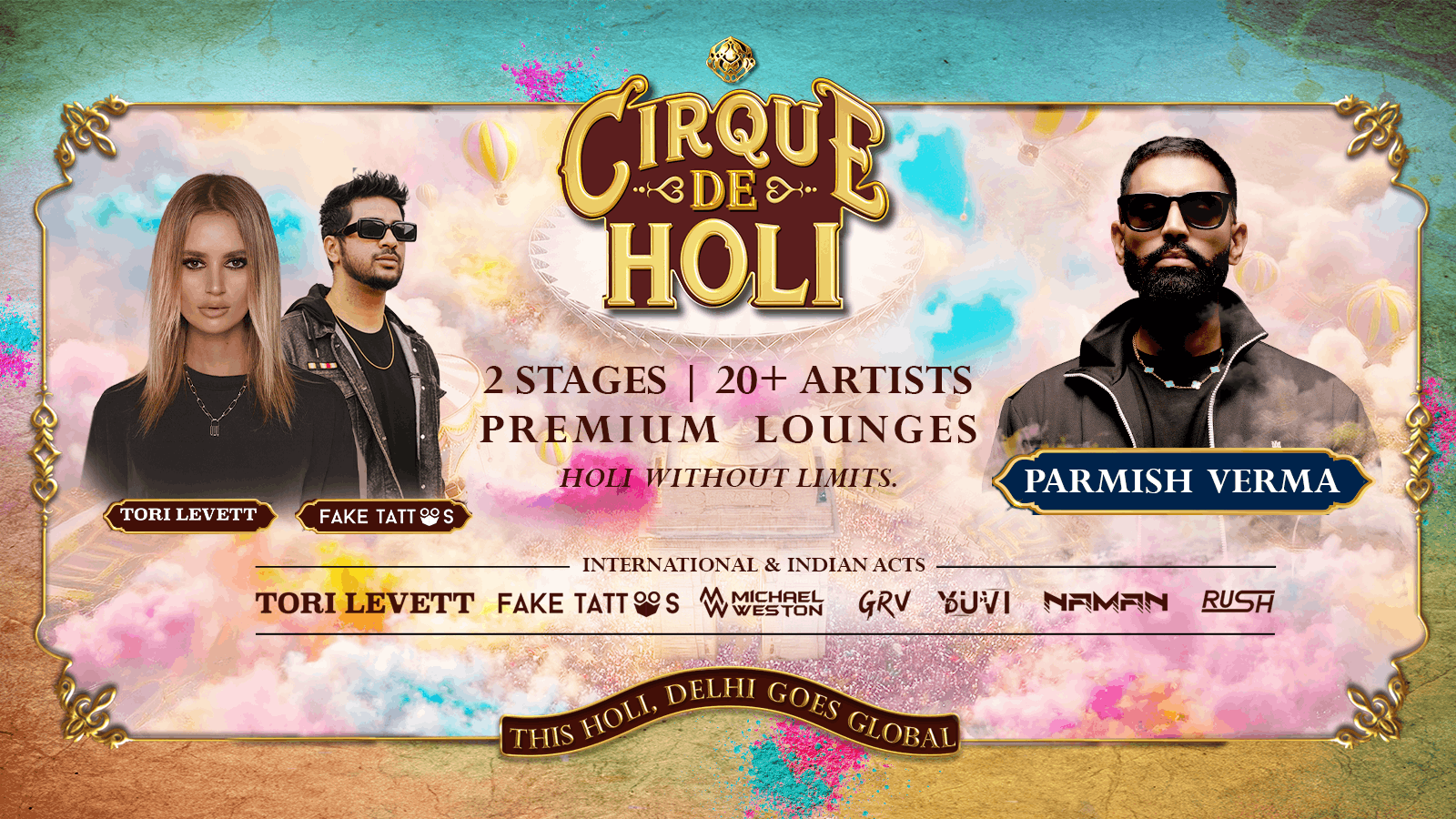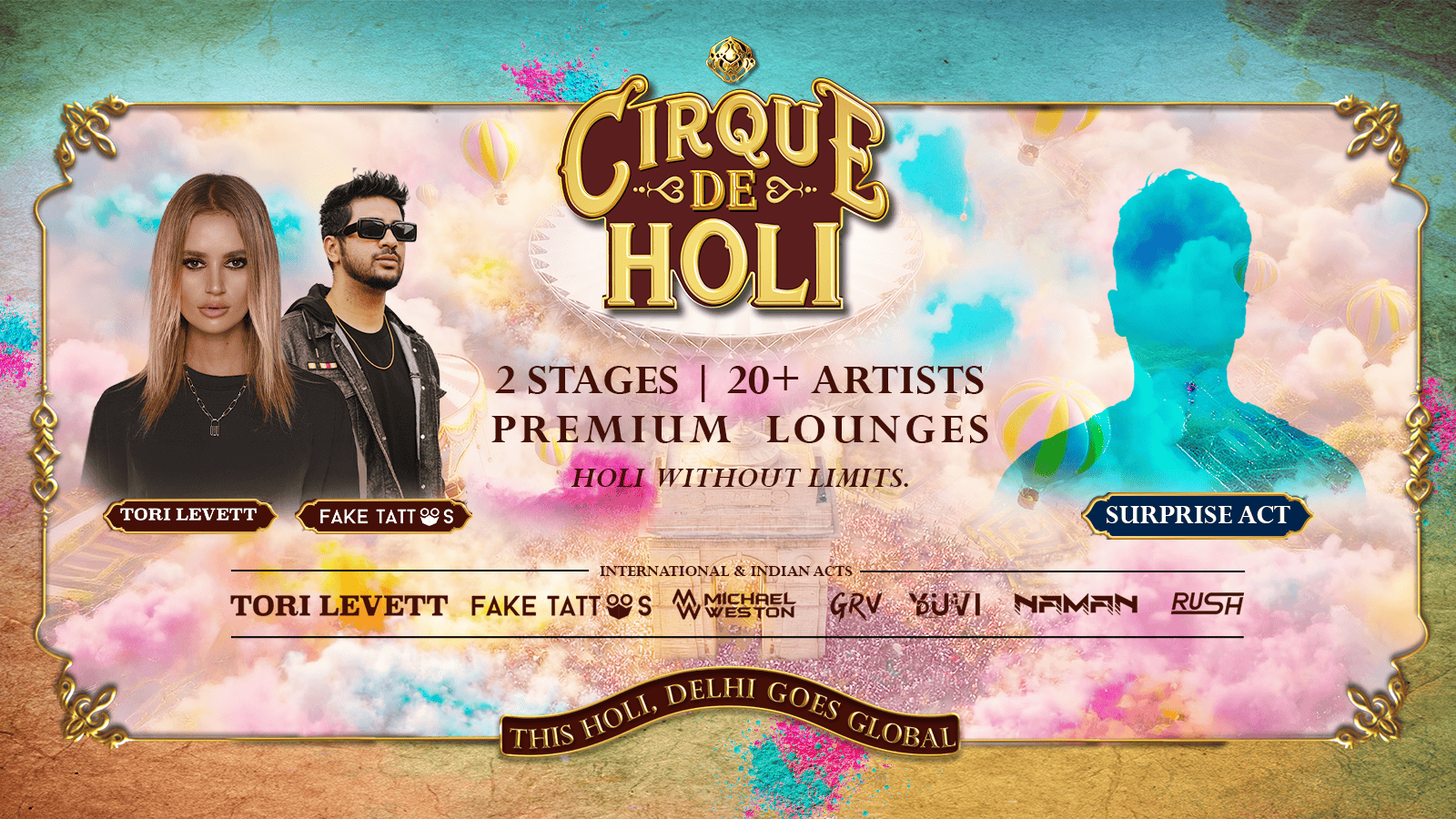 Cirque De Holi 2026 is not just a Holi party — it’s a grand festival experience crafted for those who want more. A mega stage, massive sound, and giant immersive visuals set the tone for an unforgettable day. With 20+ artists taking over the decks, expect non-stop energy from start to sundown.