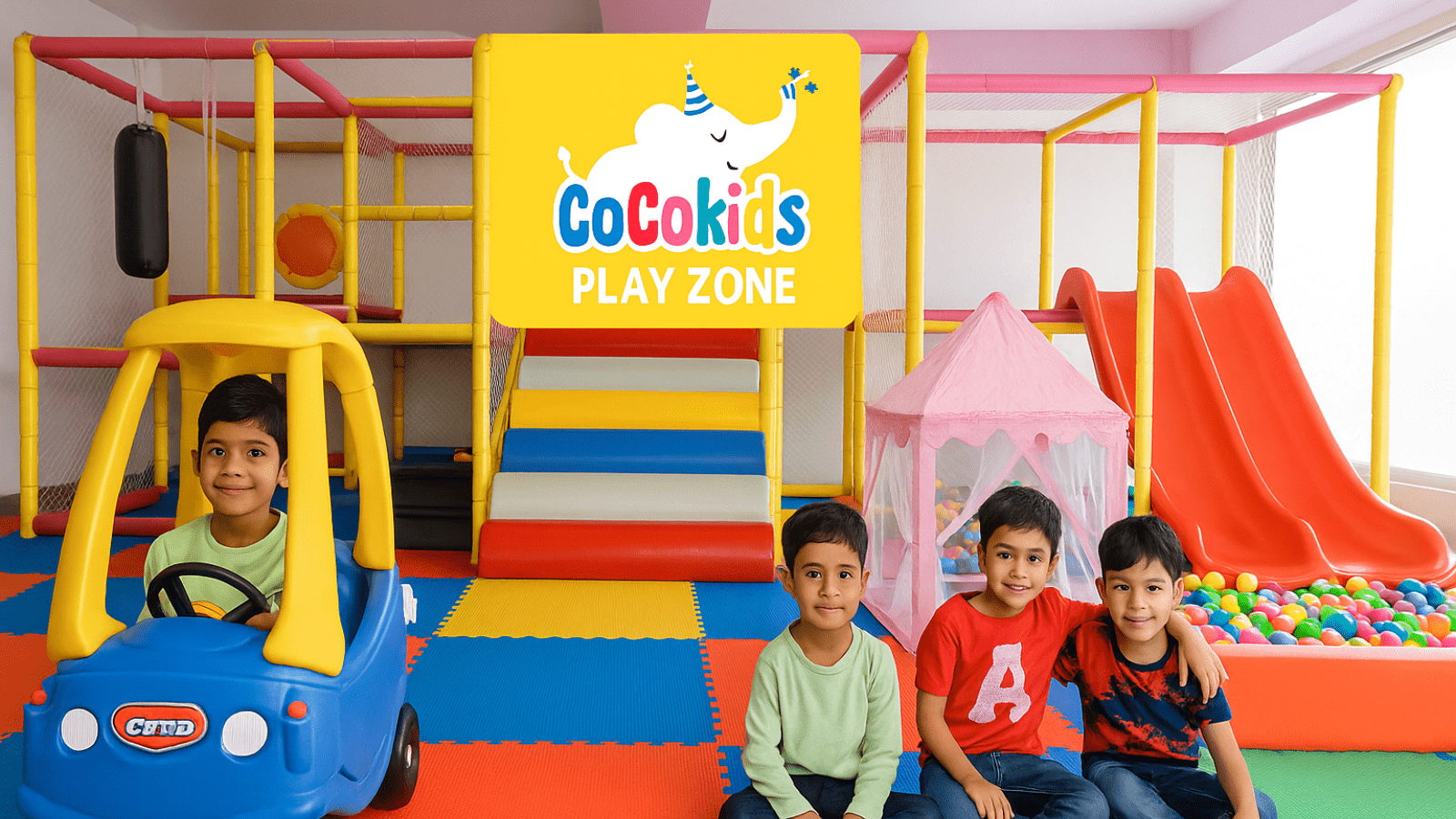Step into a world of vibrant fun at CoCo Kids Play Zone, Hyderabad’s happiest indoor playground! Designed for toddlers and young children, this colorful wonderland is packed with exciting activities like slides, ball pits, mini cars, play tents, and more. Every corner is built to spark imagination, energy, and smiles.